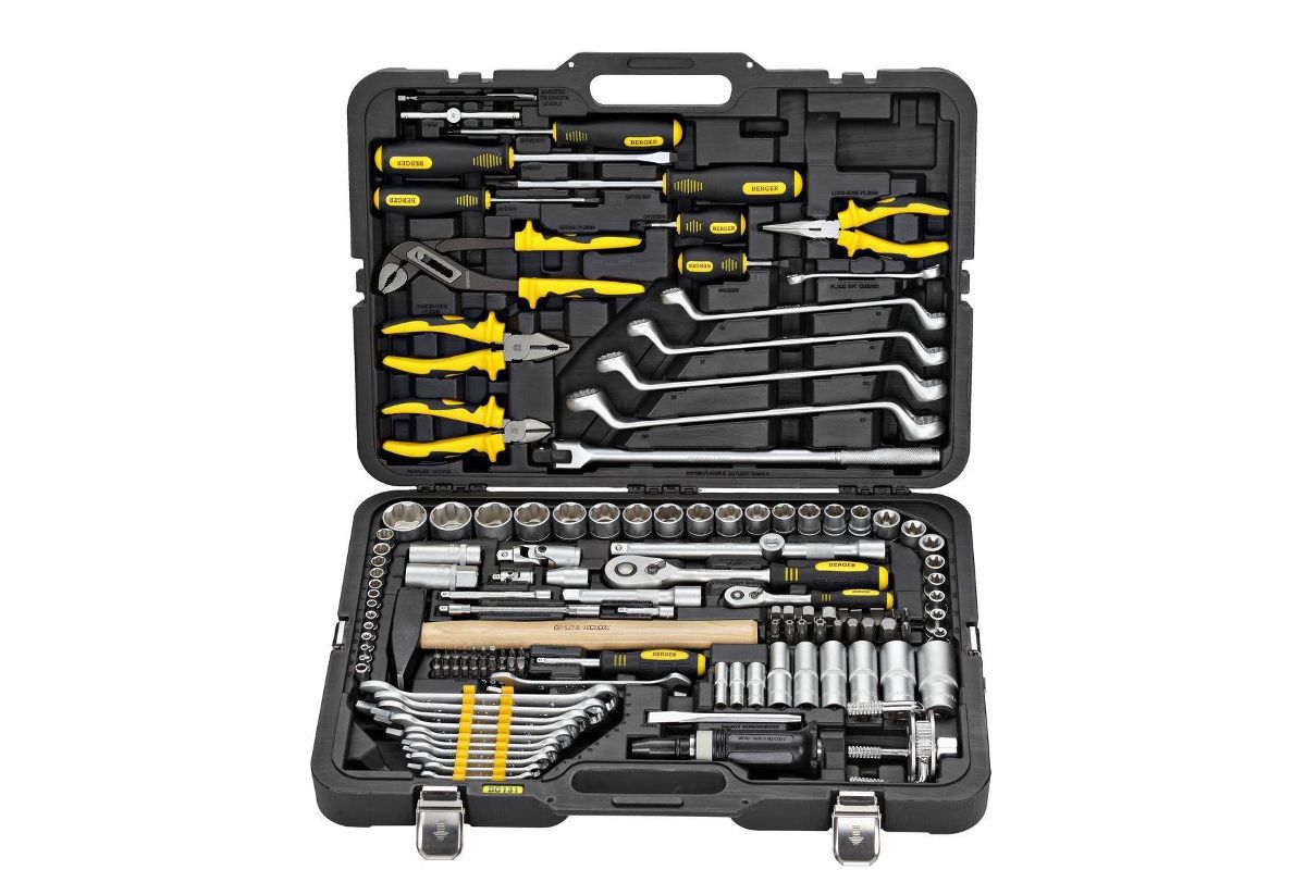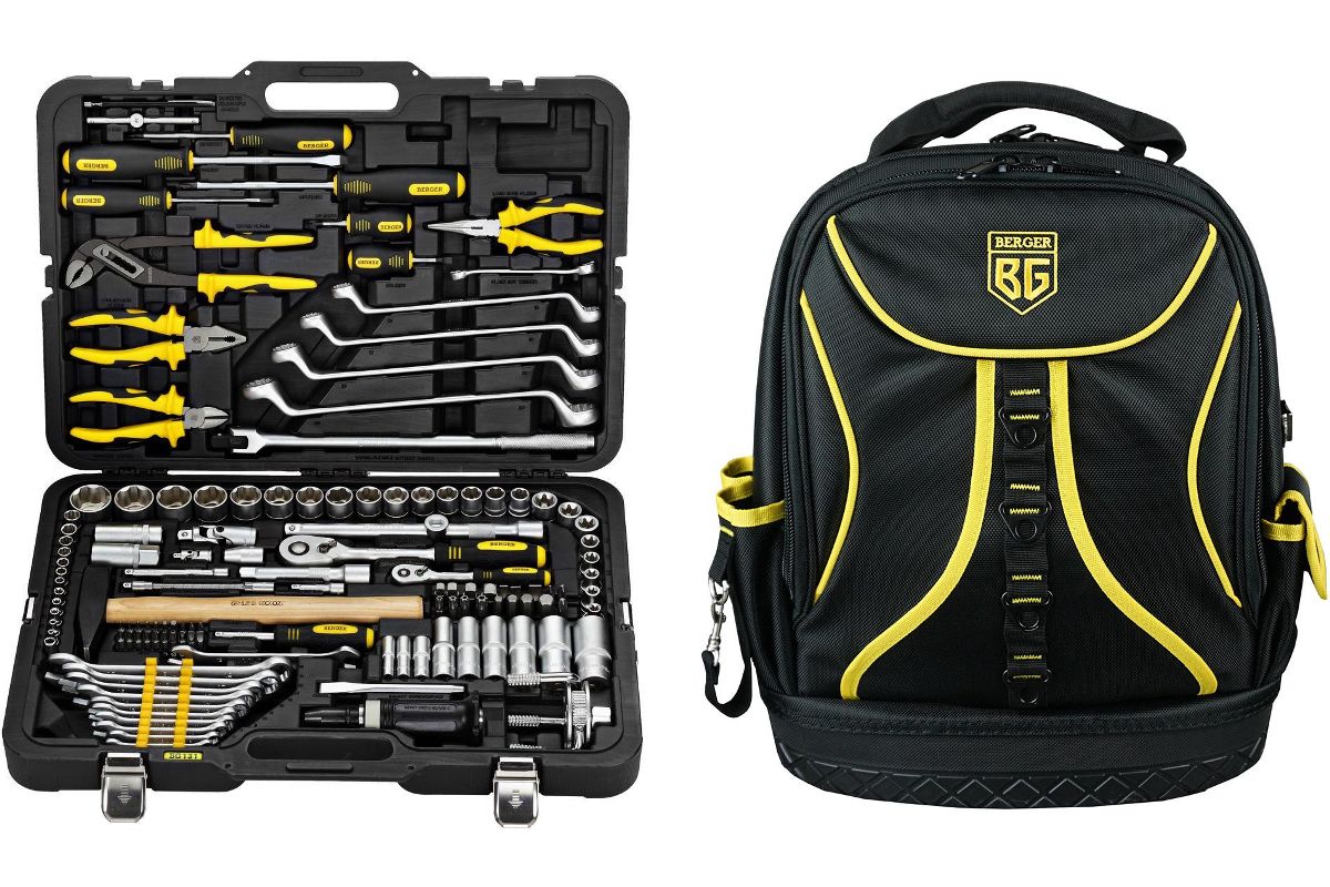 В состав набора входят: Набор инструментов BERGER BG131-1214 131 предмет, Рюкзак BERGER BG1199 Боген для инструментов