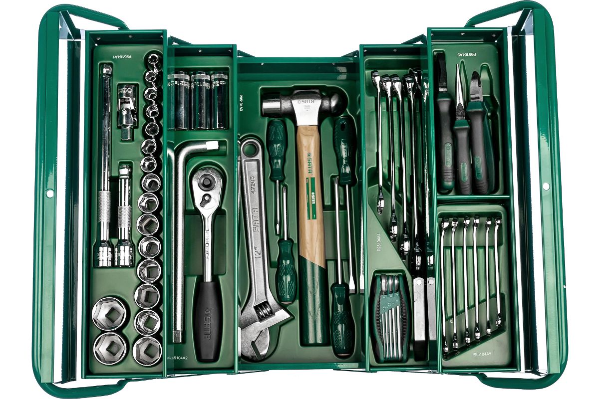 Набор SATA 95104A-70-6 70пр. комбинированный автомобил./быт. в раскл.мет.ящик. 430x200x200мм