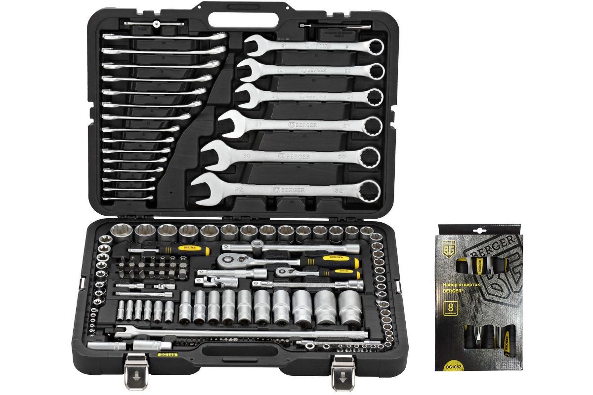 В состав набора входят: Набор инструментов BERGER BG148-1214 148 предметов, Набор отверток BERGER BG1062 8 предметов