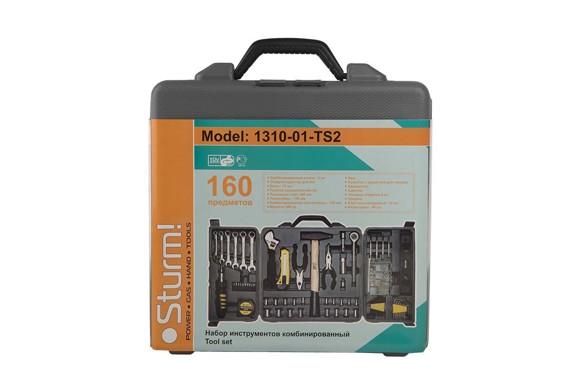 STURM! 1310-01-TS2 — универсальный набор инструментов и крепежа. В нем предусмотрено все необходимое для проведения измерительных, крепежных, слесарных и других видов работ. Компактный кейс содержит 160 предметов, которые надежно закреплены на своих местах. Удобная ручка гарантирует комфорт при переноске.