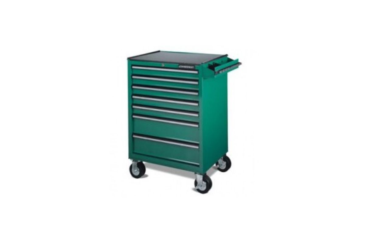 JONNESWAY C-7DW146 — авторемонтная тележка на колесах, снабженная набором из 147 инструментов. Это оборудование профессионального класса. Предназначено для использования в гараже или автосервисе. На 7 выдвижных полках размещено 10 наборов, сгруппированных по типу инструмента (ключи, торцевые головки, отвертки и др.). Рабочая поверхность позволяет выполнять небольшие задачи прямо на месте. Благодаря прочной конструкции на колесах тележку можно легко транспортировать.