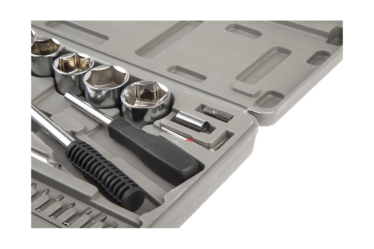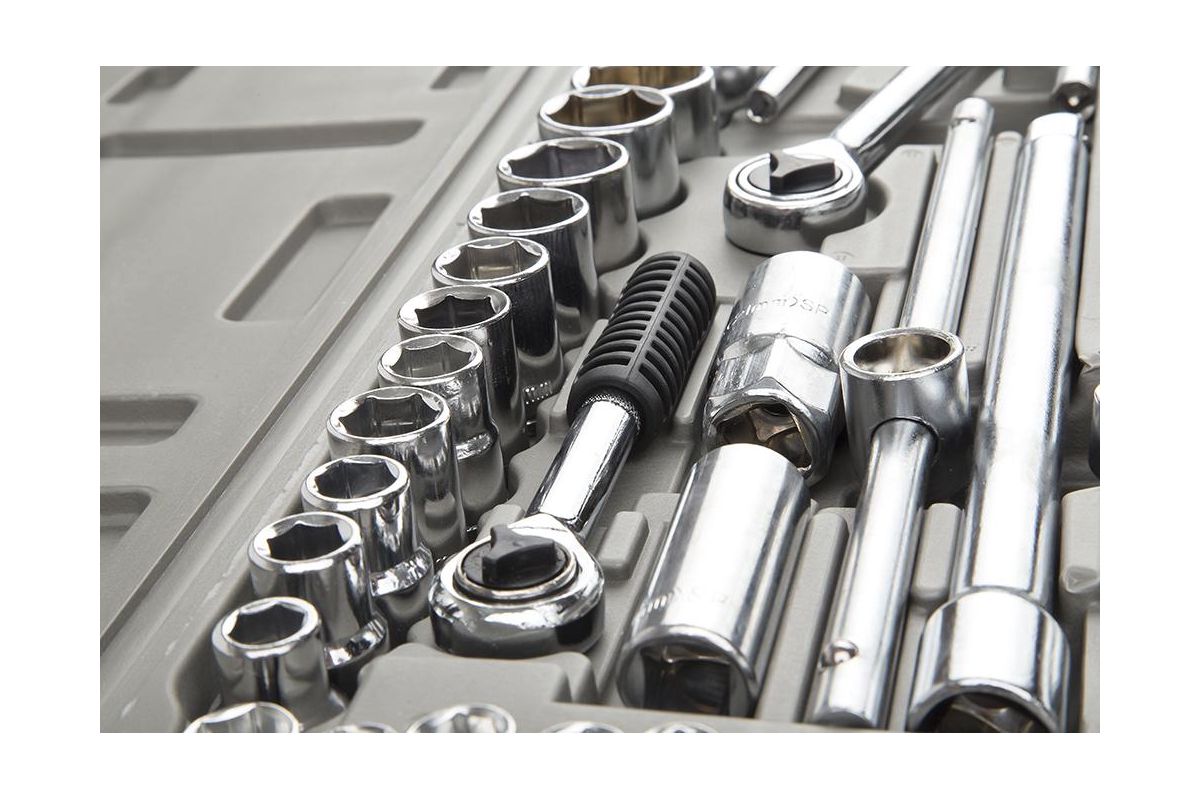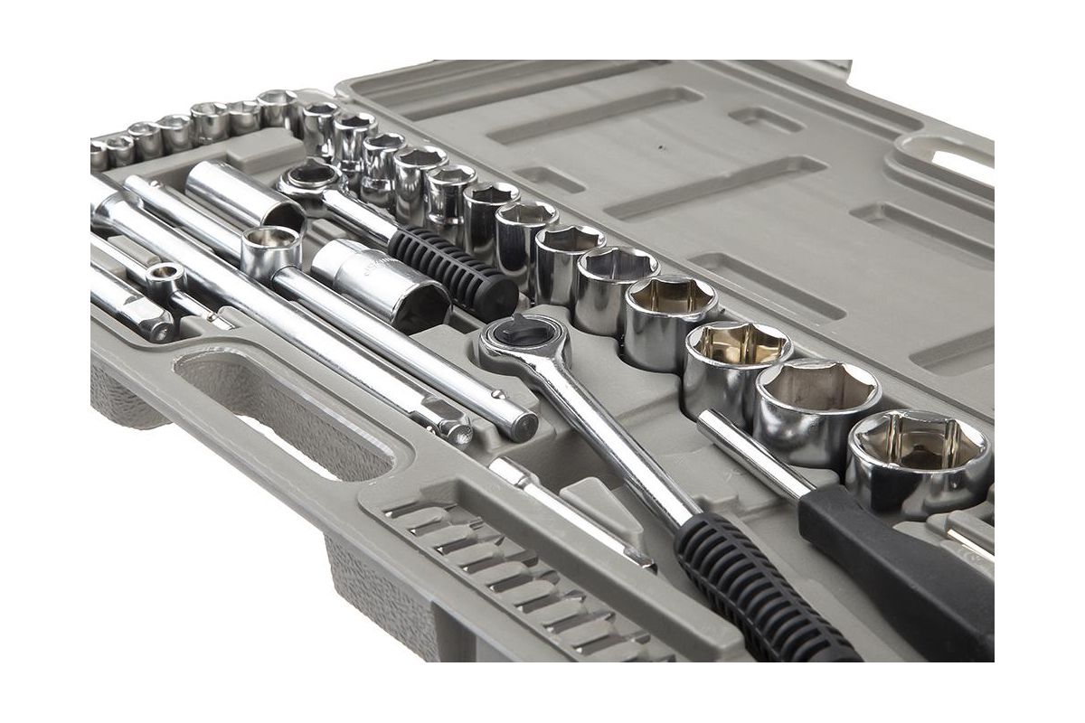 KROFT 203052 – универсальный набор инструментов для работы с крепежом. Включает в себя 52 предмета. Вес 3,7 кг. Пригодится для использования дома, в гараже или на даче.