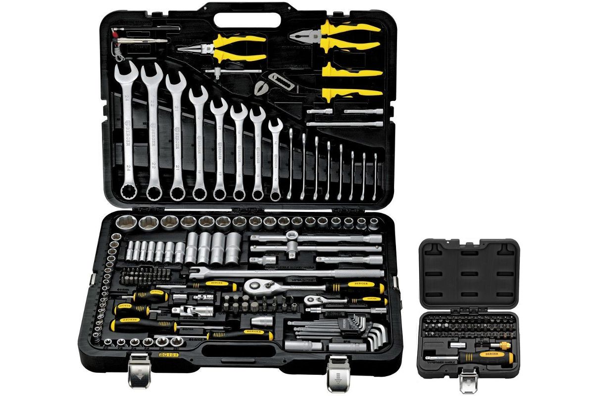 В состав набора входят: Набор инструментов BERGER BG151-1214 151 предмет, Набор бит BERGER BG-45SB ручка+биты 45 предметов в кейсе