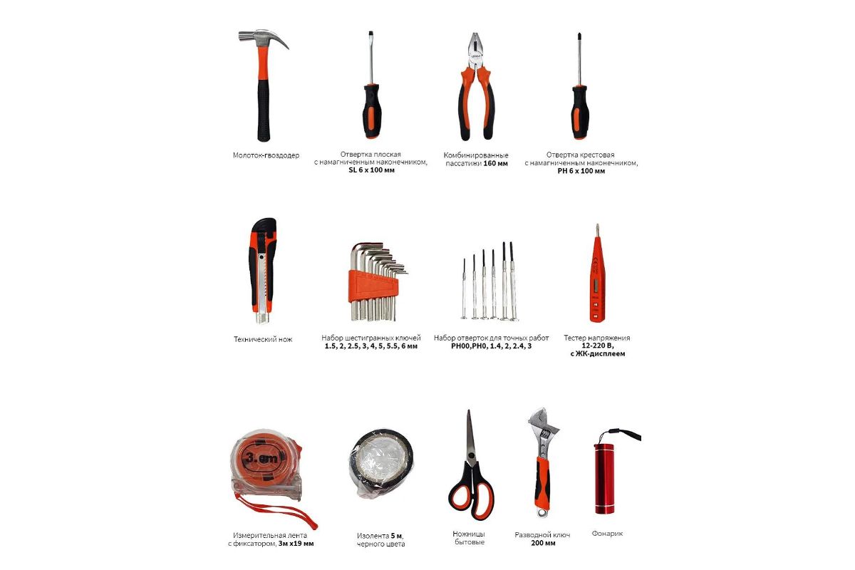 Инструменты URM подходят для использования как в домашних, так и в профессиональных условиях. С их помощью можно легко устранить поломки в доме, в гараже и на даче, совершить сборку и разборку мебели и техники. В наборе собрано все самые популярные и необходимые инструменты для выполнения строительных, ремонтных, отделочных, электромонтажных и сантехнических работ. Набор комплектуется прочным кейсом для легкой переноски и удобного использования. Инструменты изготовлены из высокопрочной хромованадиевой стали, что значительно повышает срок службы инструментов. Набор упакован в компактную пластиковую коробку с откидным верхом.