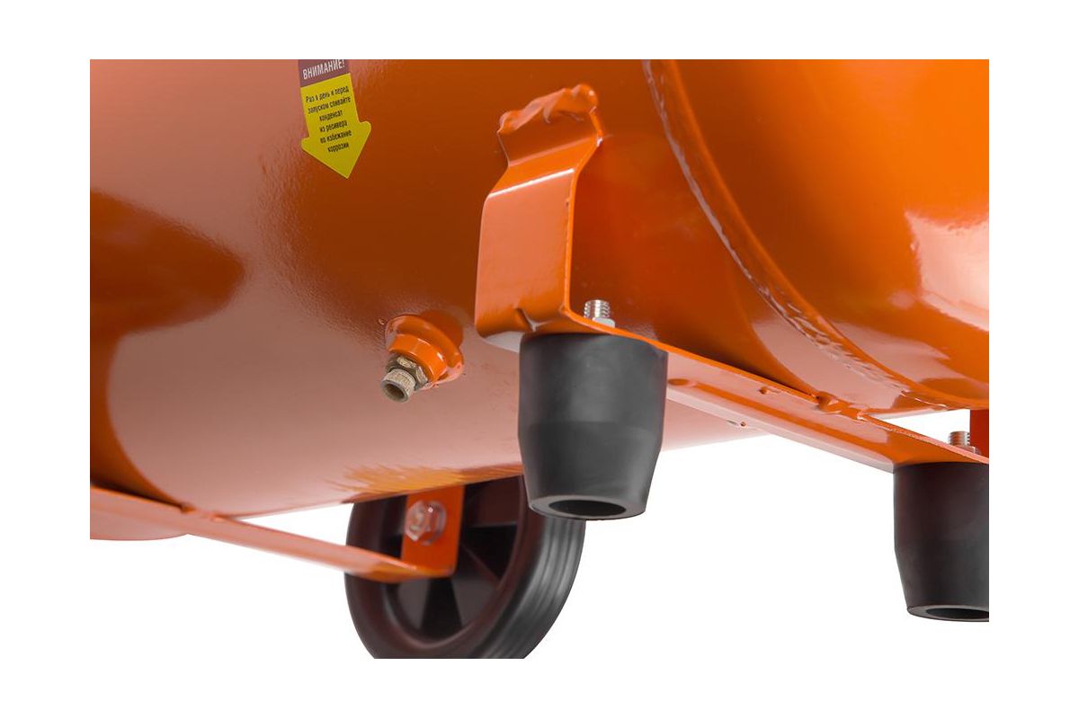 Компрессор установлен на 2 колеса и резиновые виброснижающие подставки. С помощью прорезиненной ручки вы легко сможете переместить компрессор на новое место.