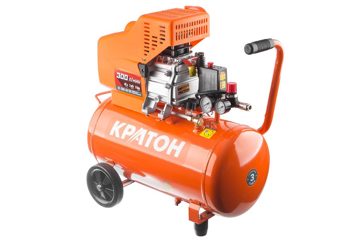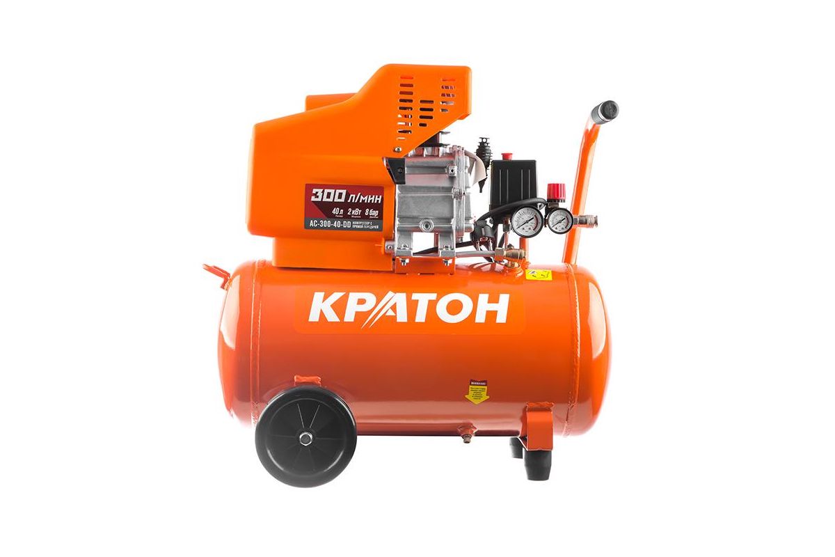 Благодаря двигателю мощностью 2000 Вт компрессор КРАТОН AC-300-40-DD достигает производительности до 300 л/мин. Совместим с различным инструментом – от продувочных и заклёпочных пистолетов до гайковёртов, дрелей и перфораторов.