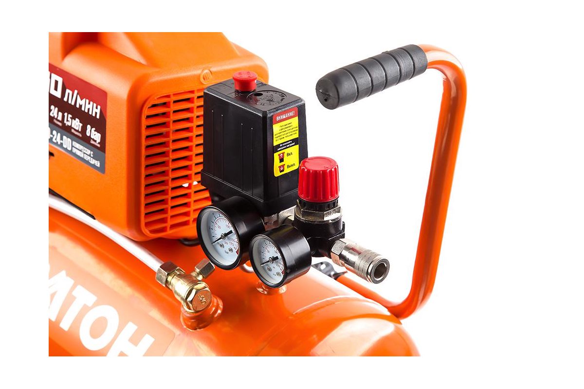 Объем ресивера 24 л - компрессор компактен и удобен в транспортировке.