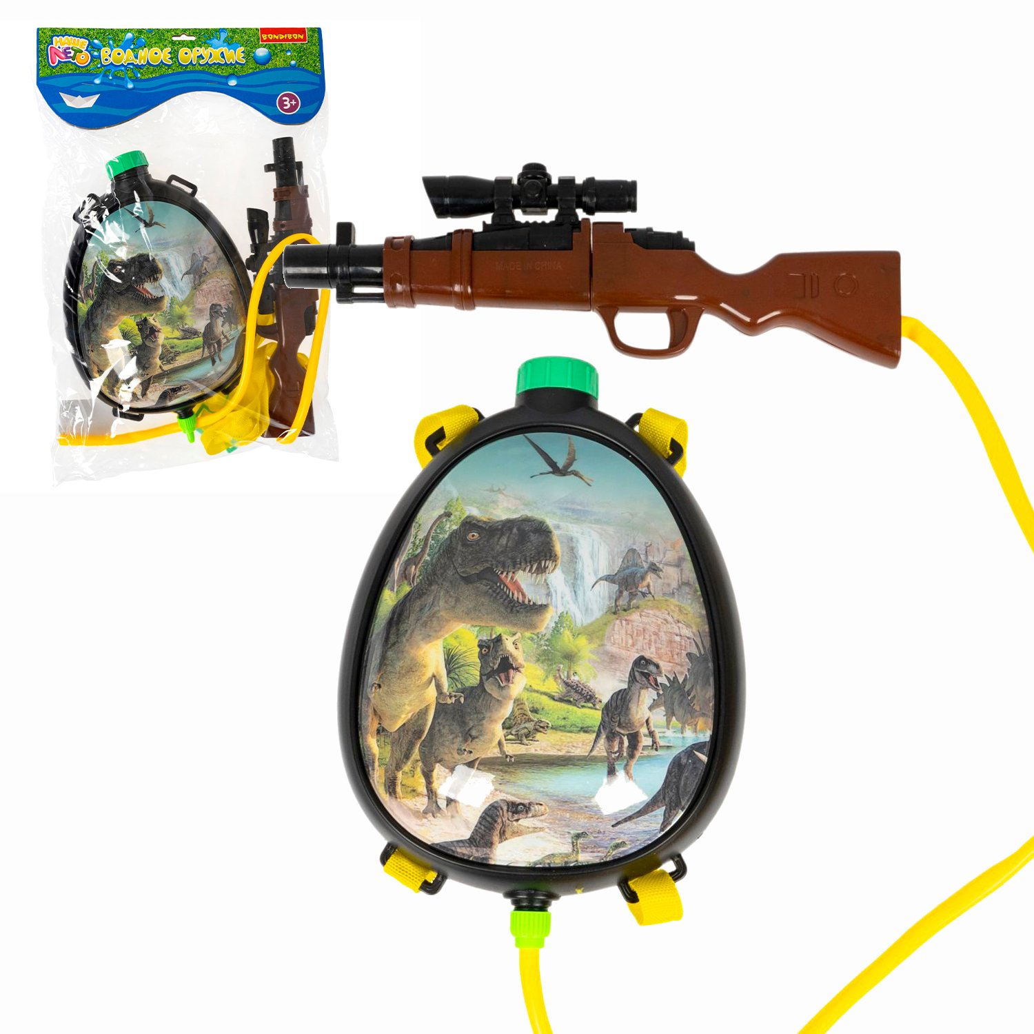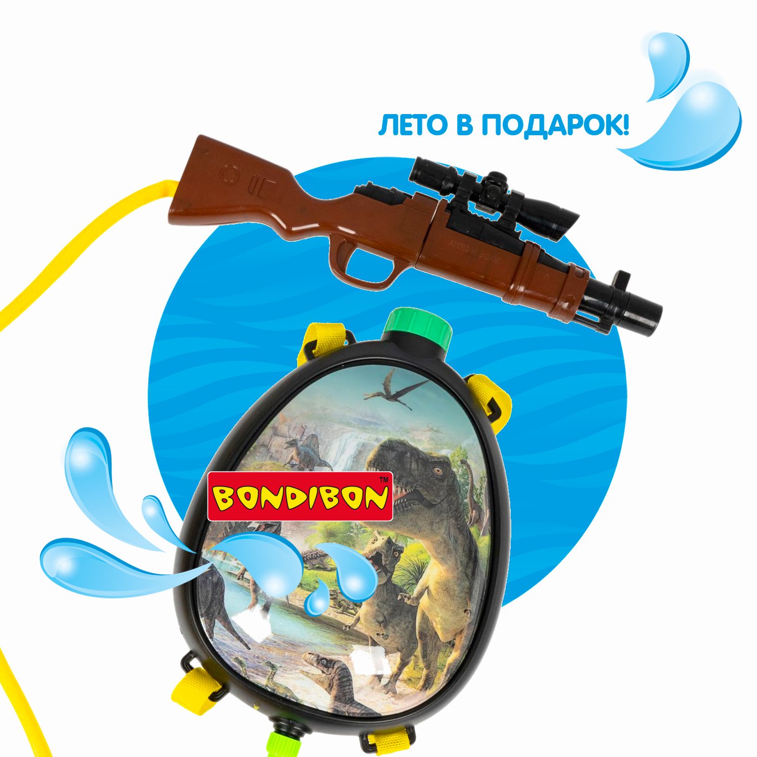 Водное оружие с помпой BONDIBON Динозавры с рюкзаком резервуаром 2000 мл стрельба 6-8 метров серия Наше Лето ВВ5412