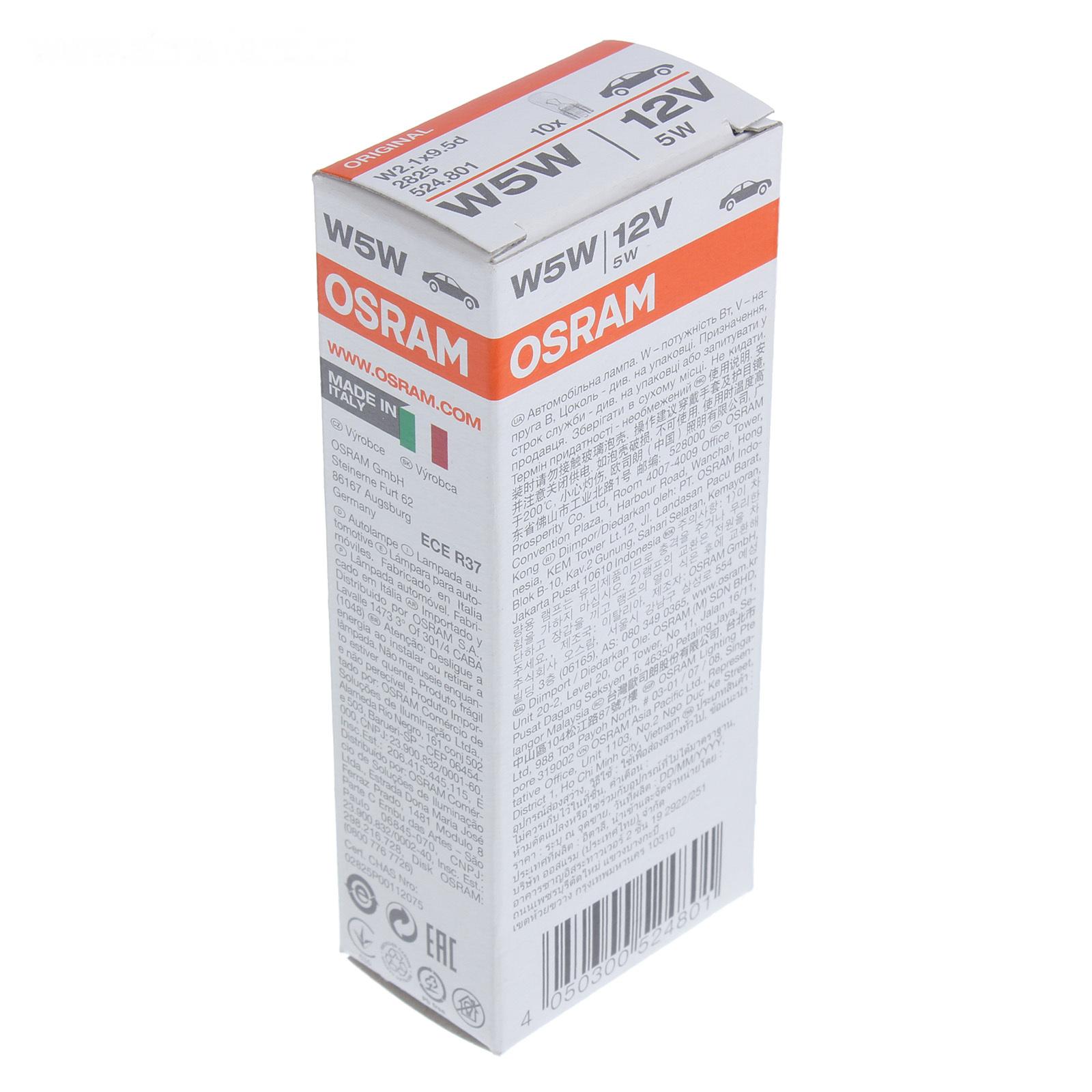 Лампа автомобильная Osram, W5W, 12 В, 5 Вт, 1 шт