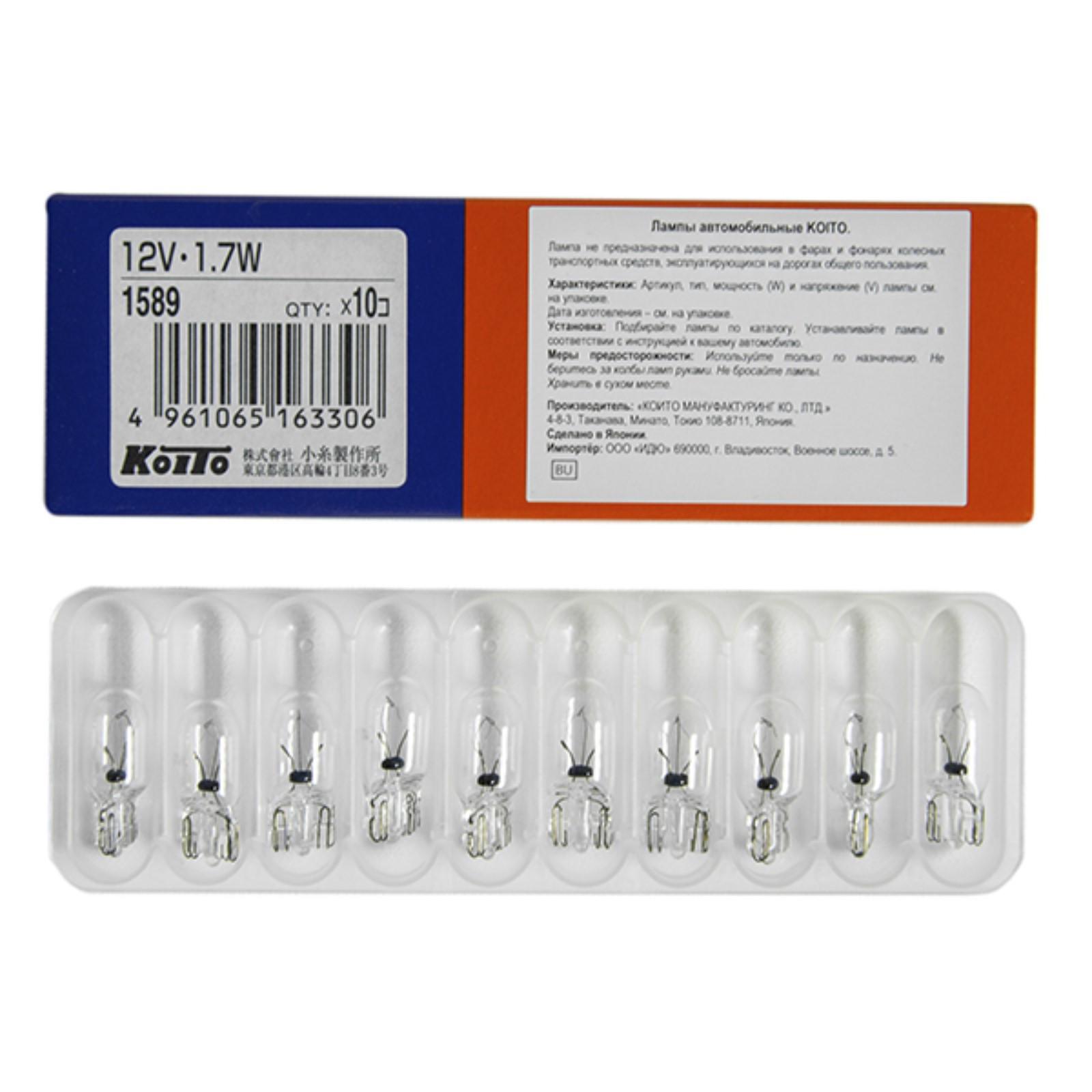 Лампа дополнительного освещения Koito, 12V 1.7W - без цоколя T10