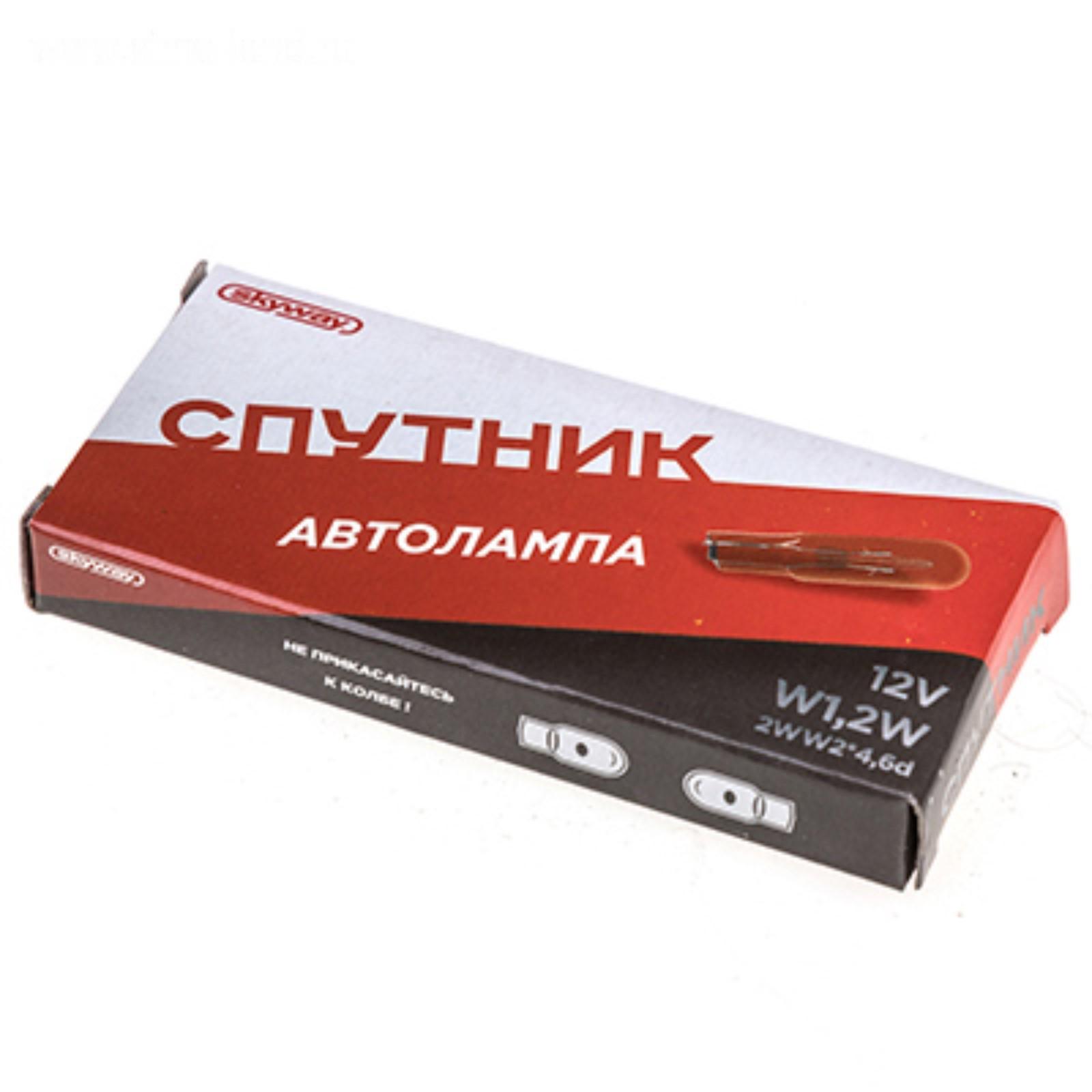 Автолампа W1,2W 12V 2W W2*4,6d СПУТНИК SKYWAY - одноконтактная лампа накаливания мощностью 1,2 Вт без цоколя. Лампочки W1,2W устанавливаются в приборную панель автомобилей, с напряжением 12В Лампы дают хороший яркий белый свет.