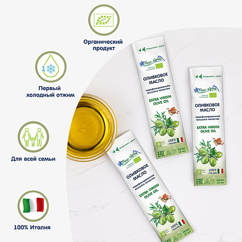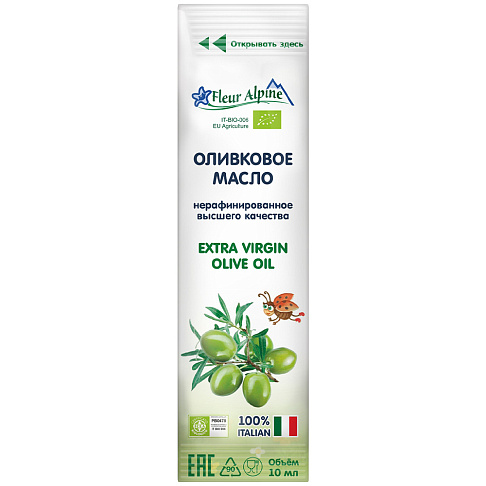 Оливковое масло Fleur Alpine первого холодного отжима Extra Virgin, для всей семьи, сашет 10 мл