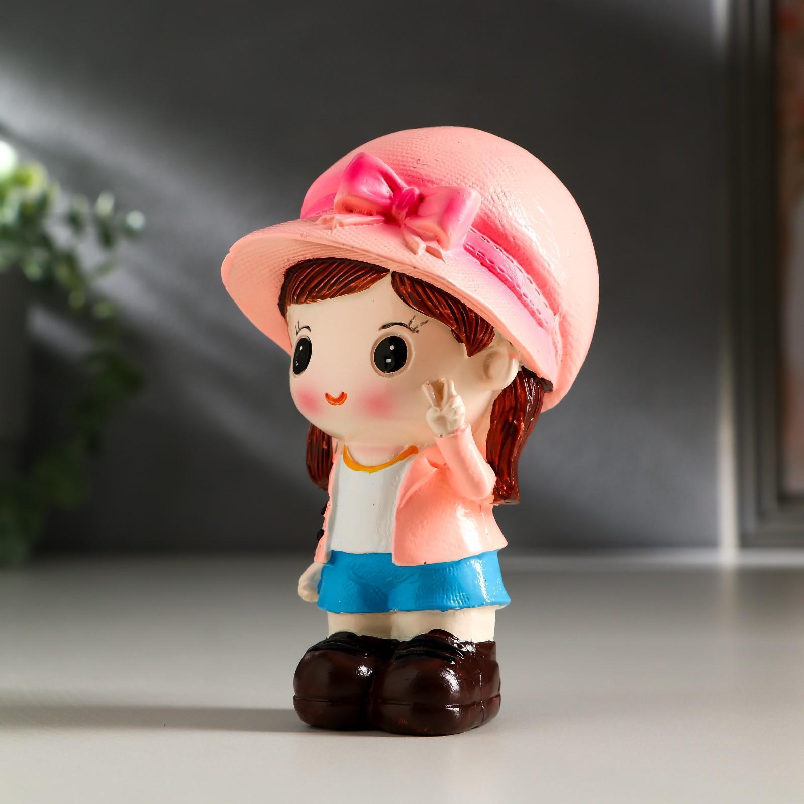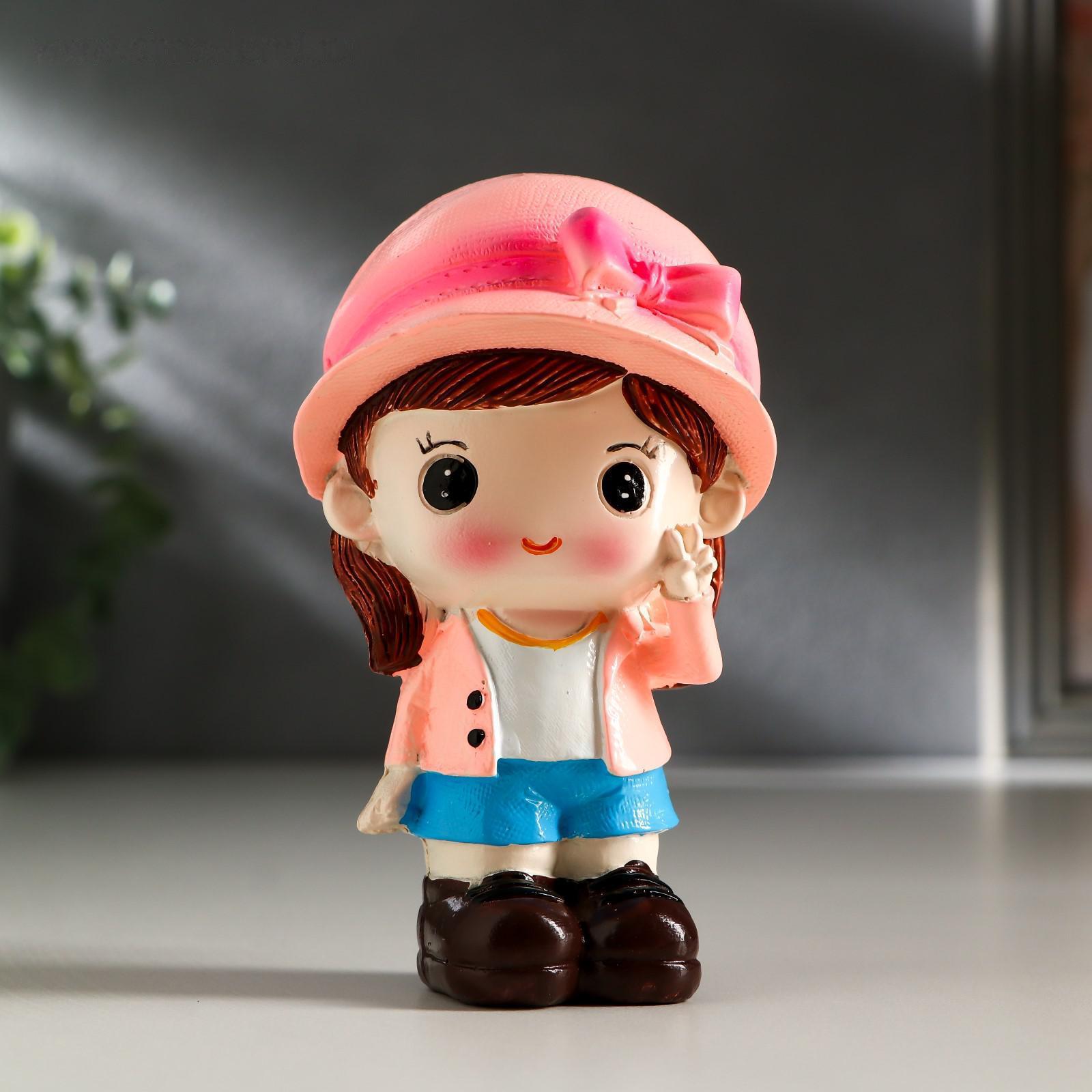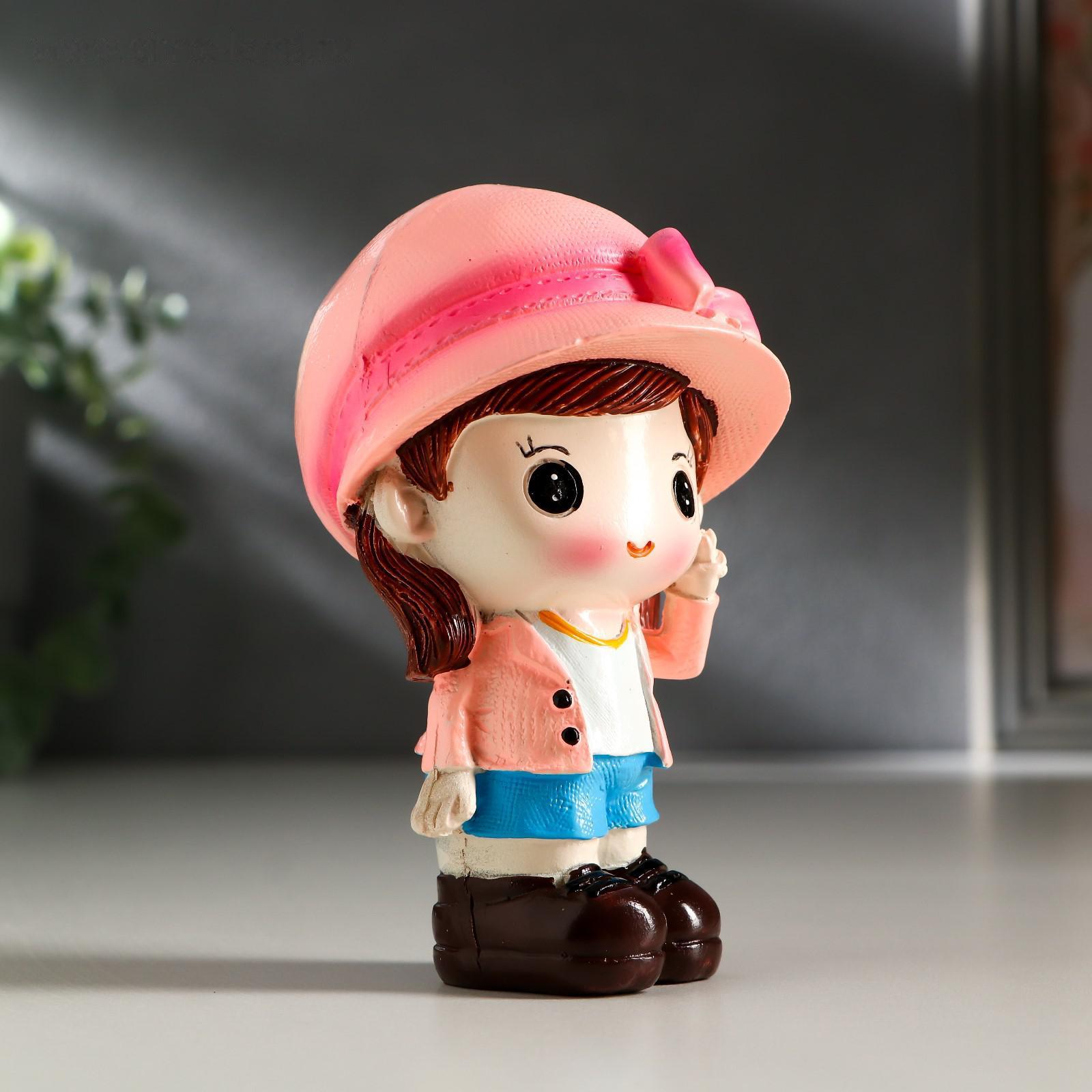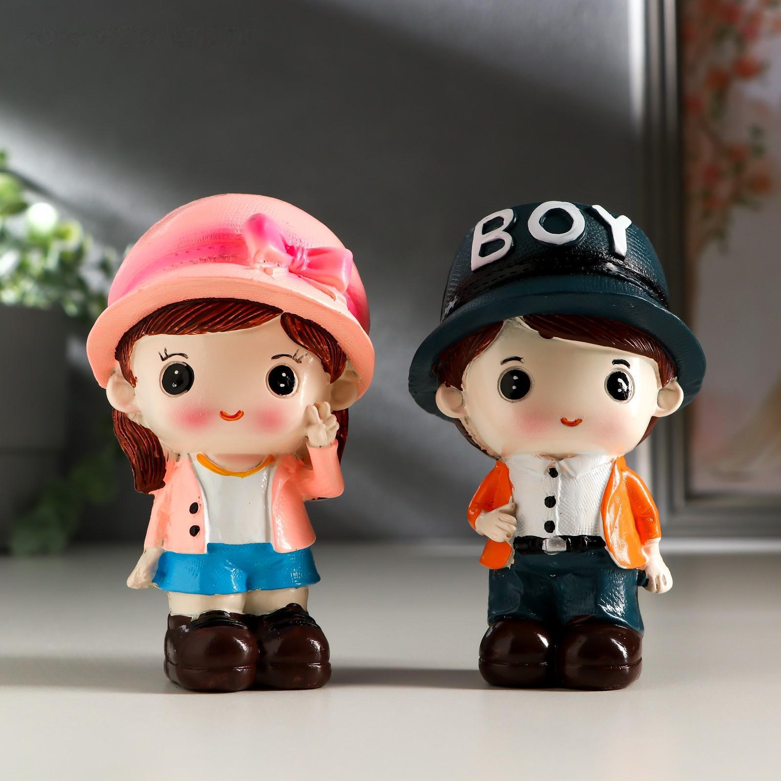 Сувенир полистоун "Малыш в кепке/Малышка в шляпке" набор 2 шт 10х5,8х5,5 см