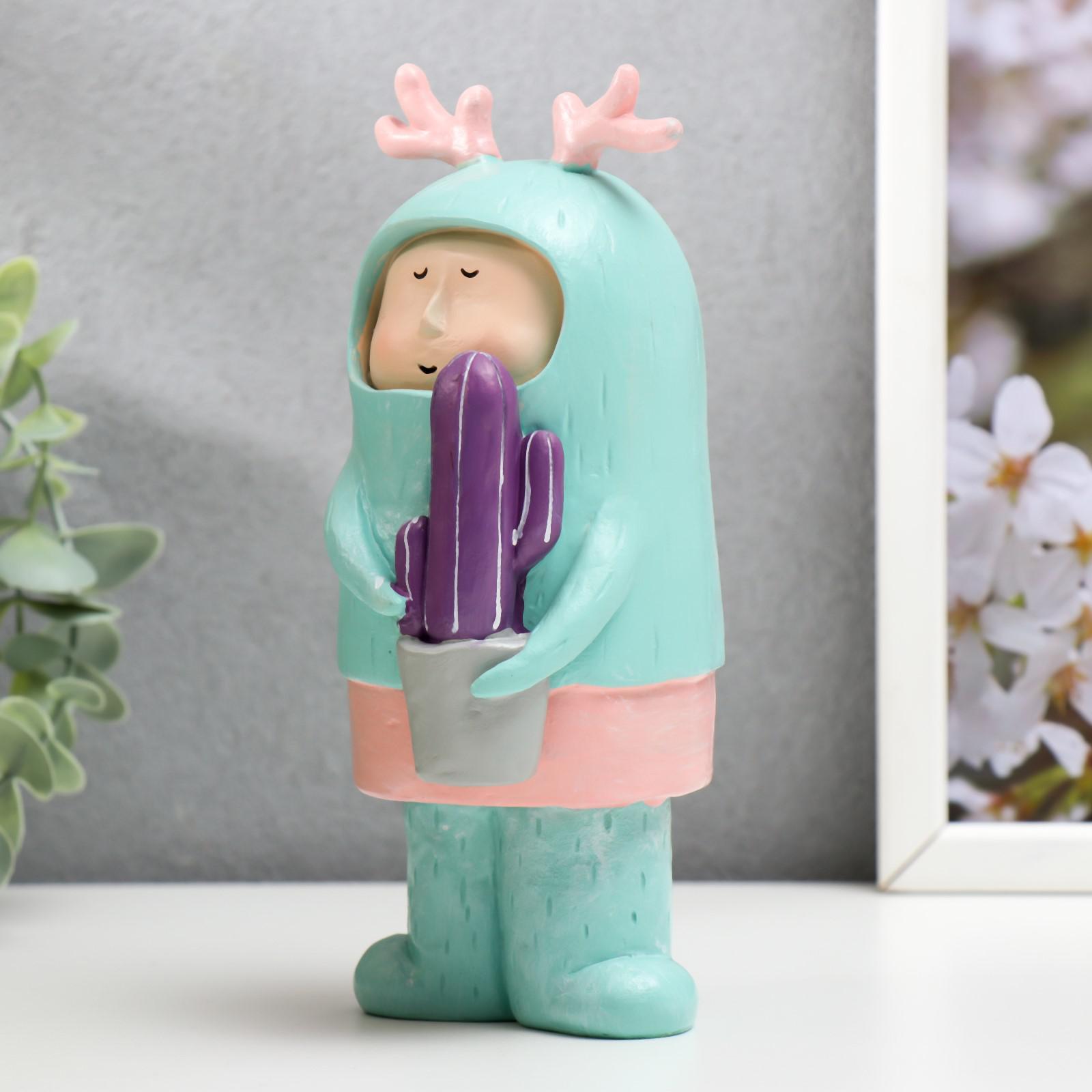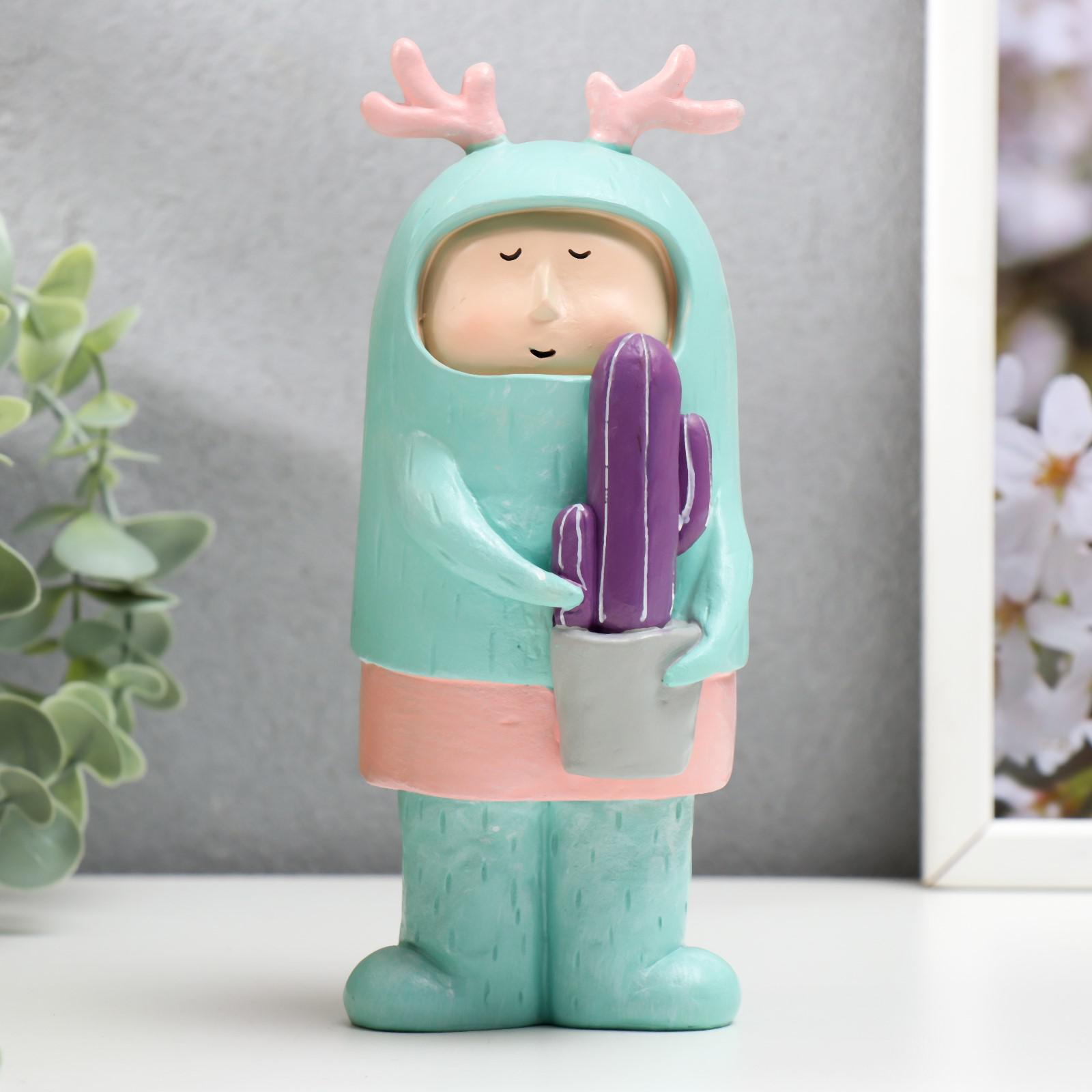 Сувенир полистоун "Малыш с оленьими рожками и кактусом в горшке" 18х7х7,5 см