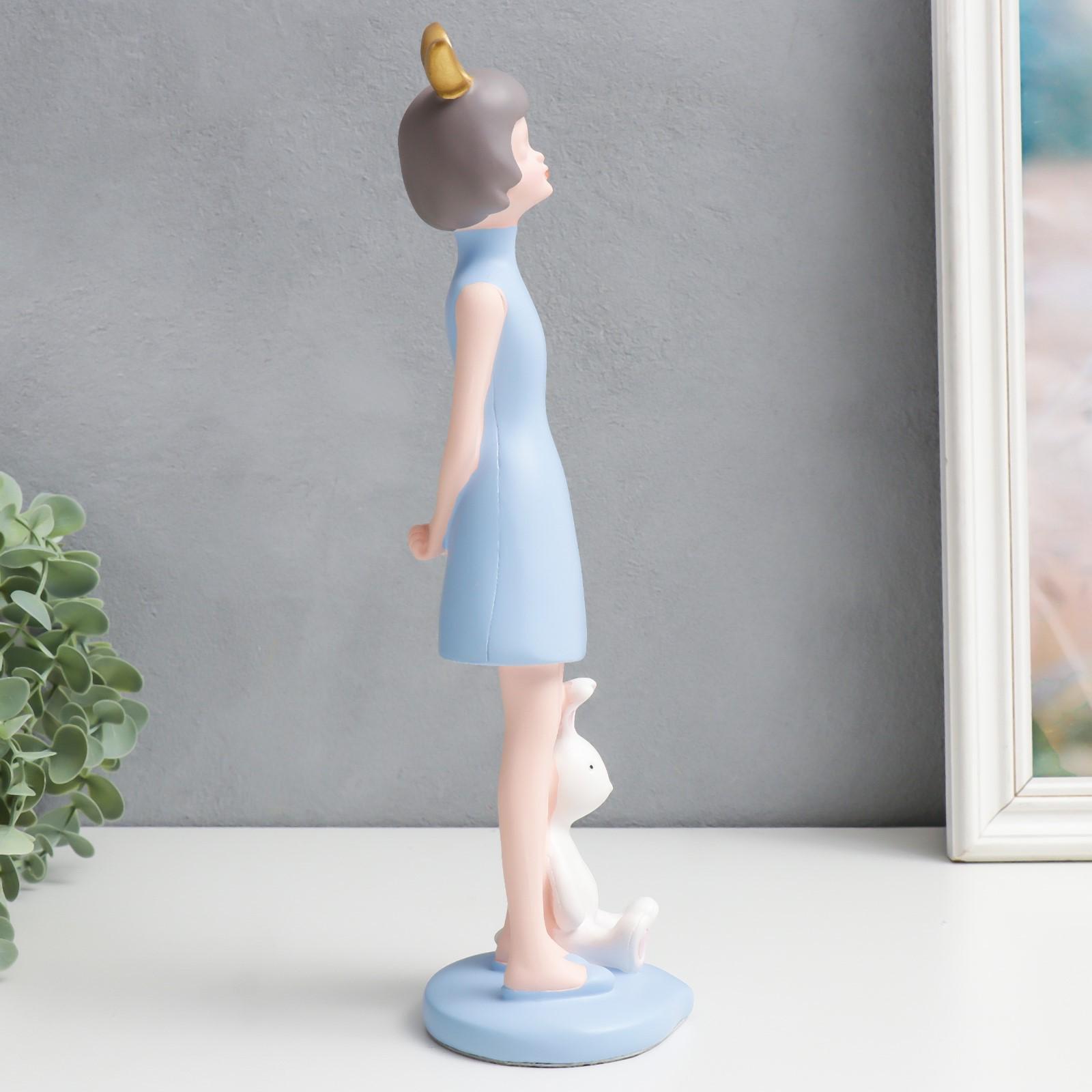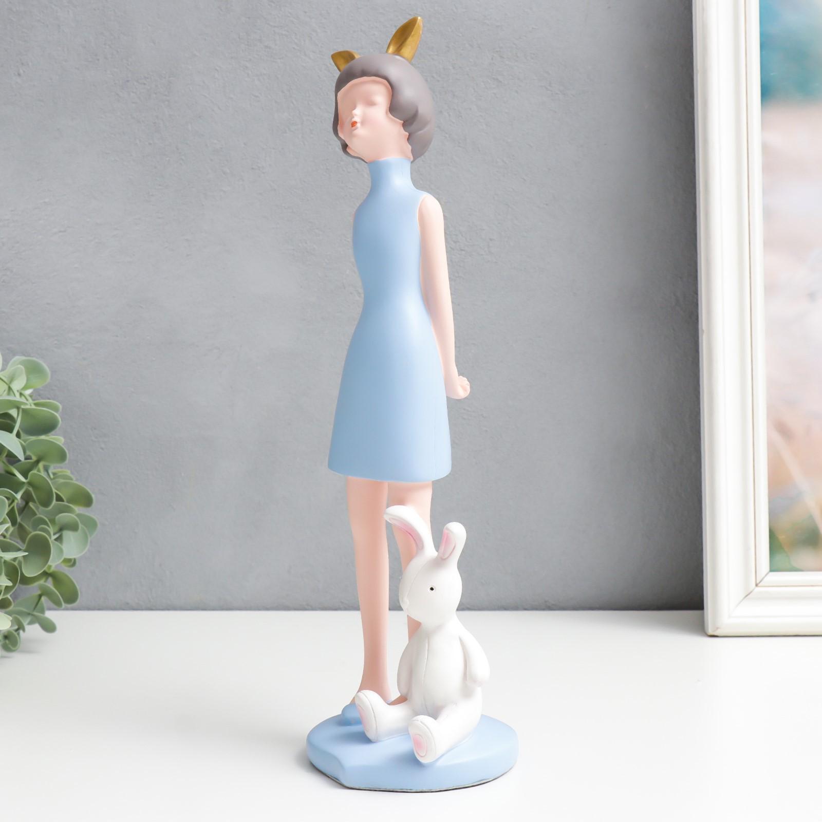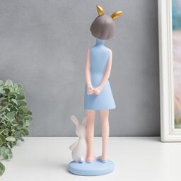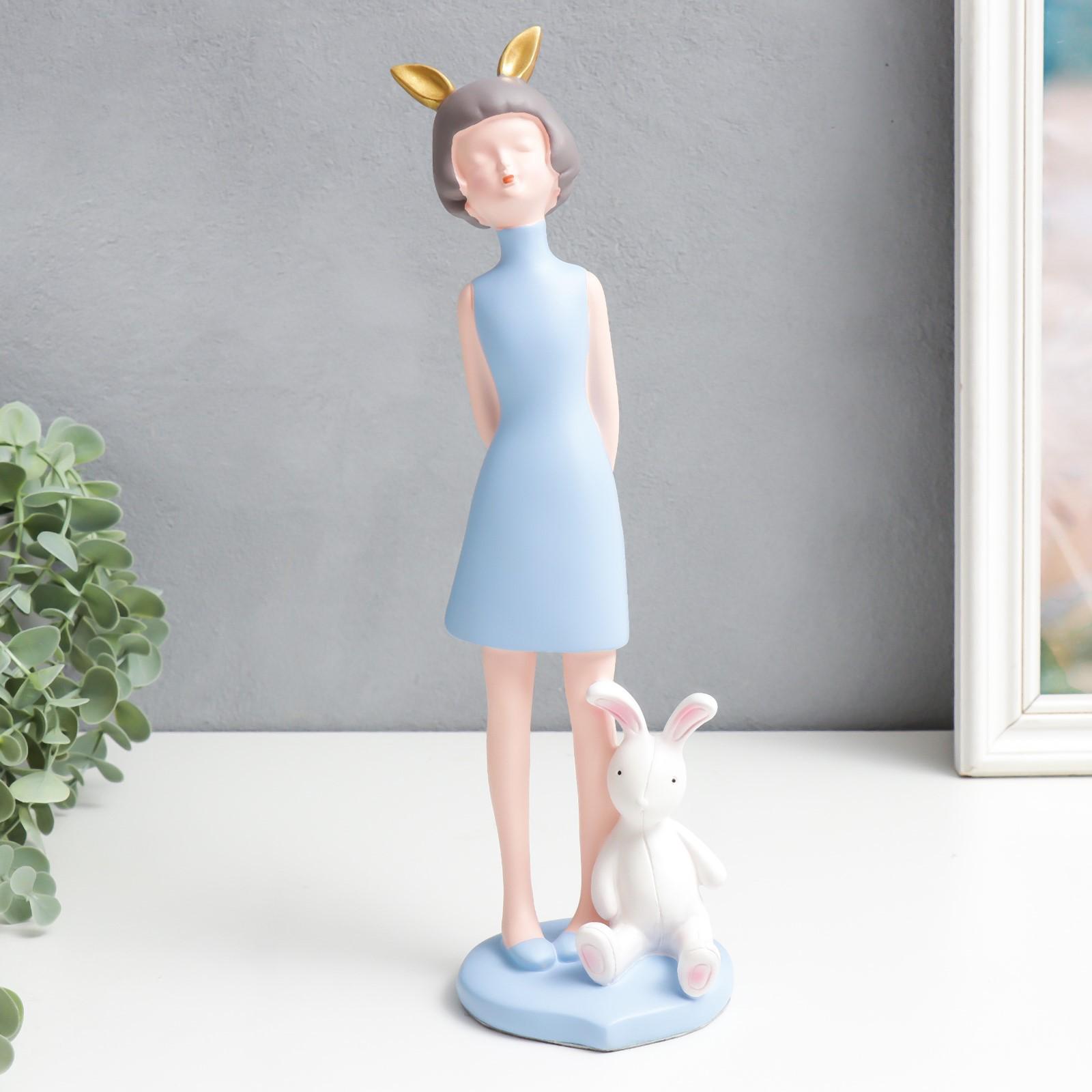 Сувенир полистоун "Девочка с заичьими ушками, с кроликом" голубой 29х10х10 см