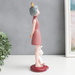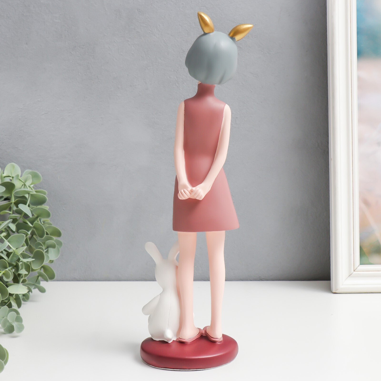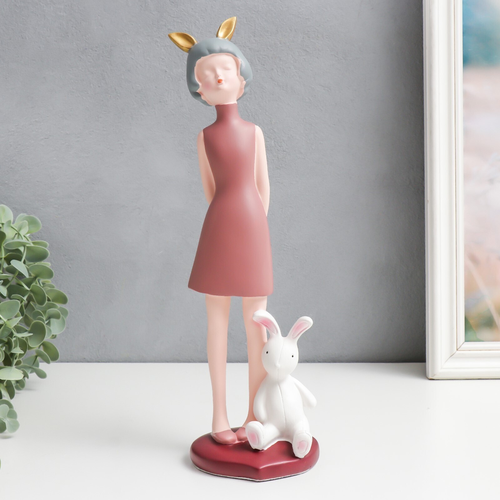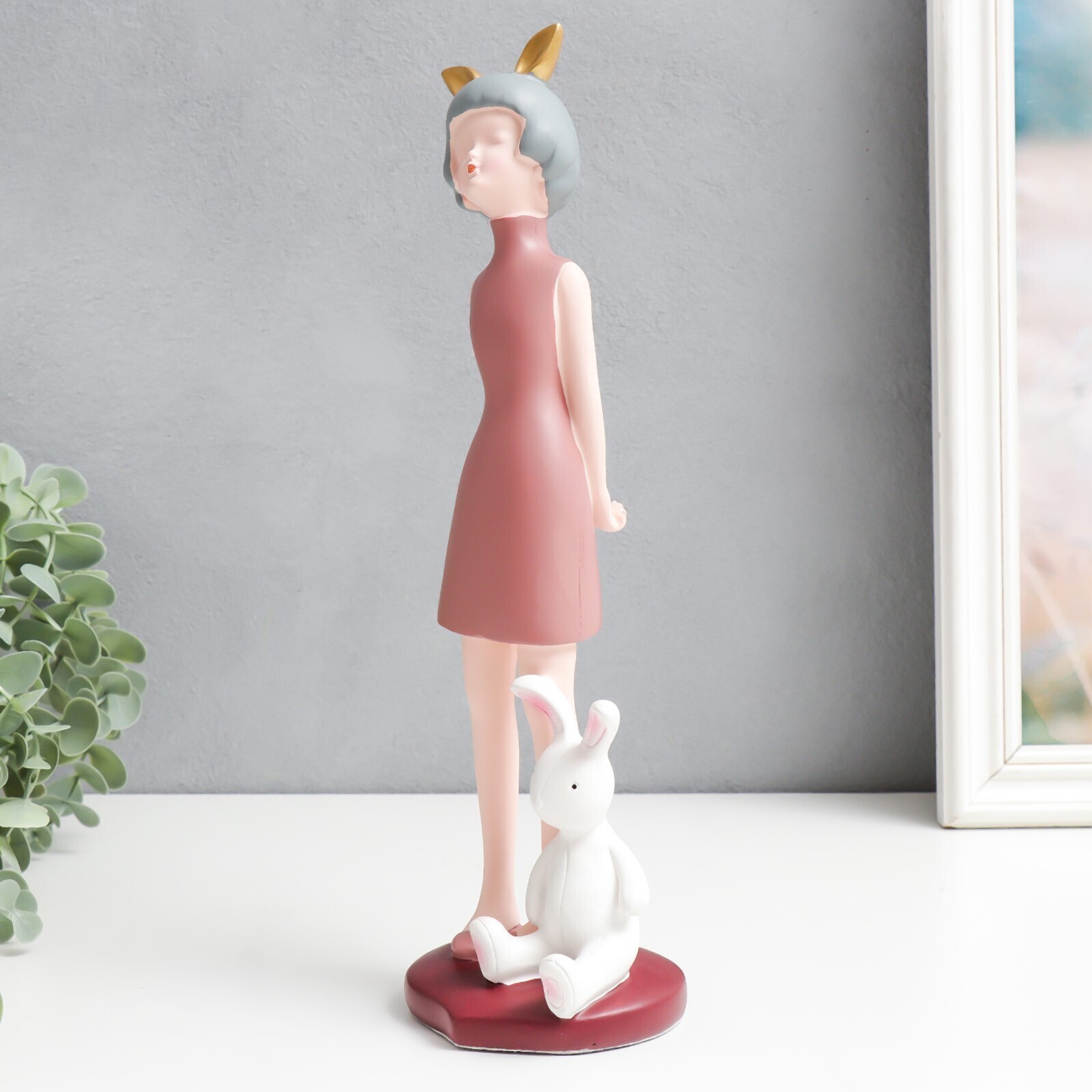 Сувенир полистоун "Девочка с заичьими ушками, с кроликом" розовый 29х10х10 см
