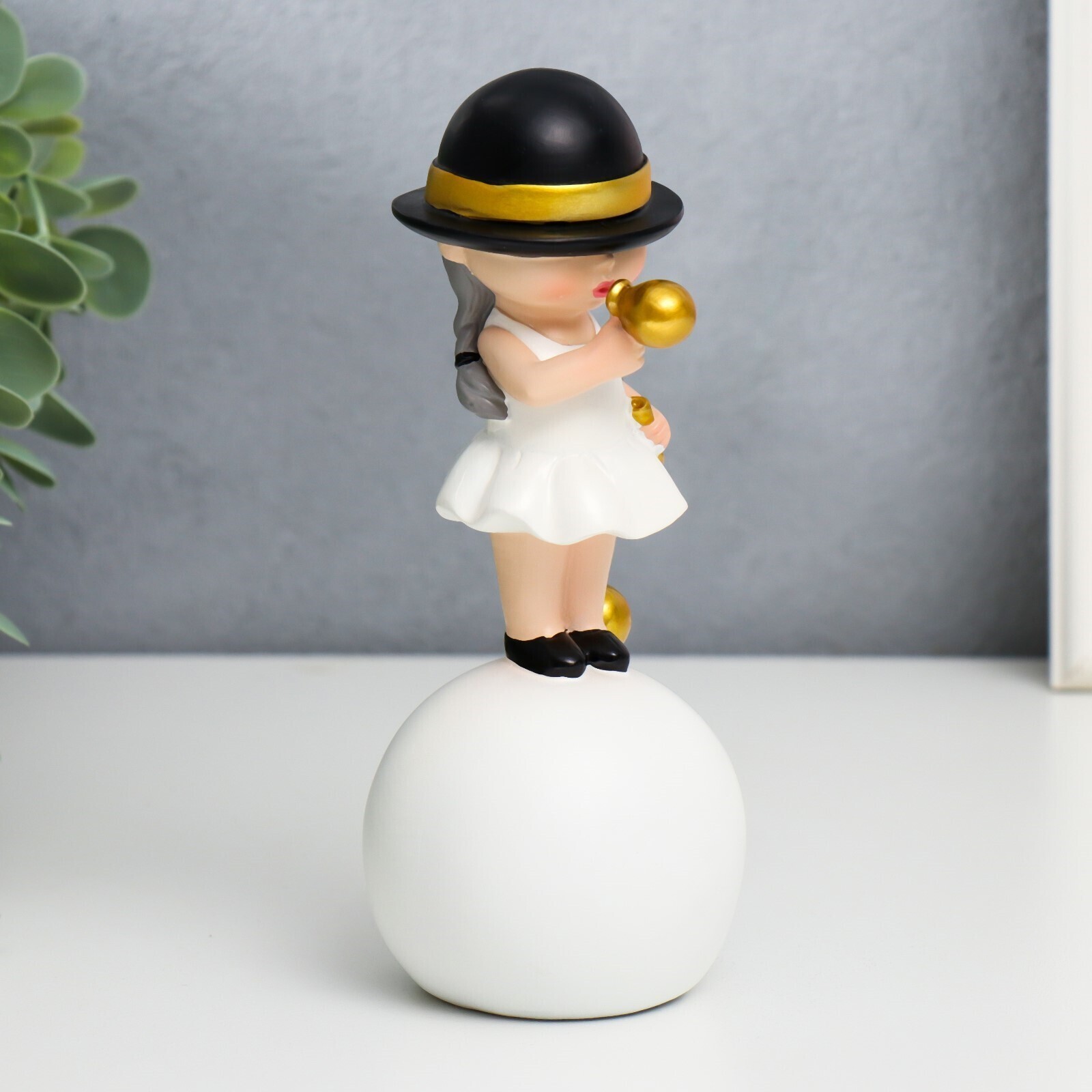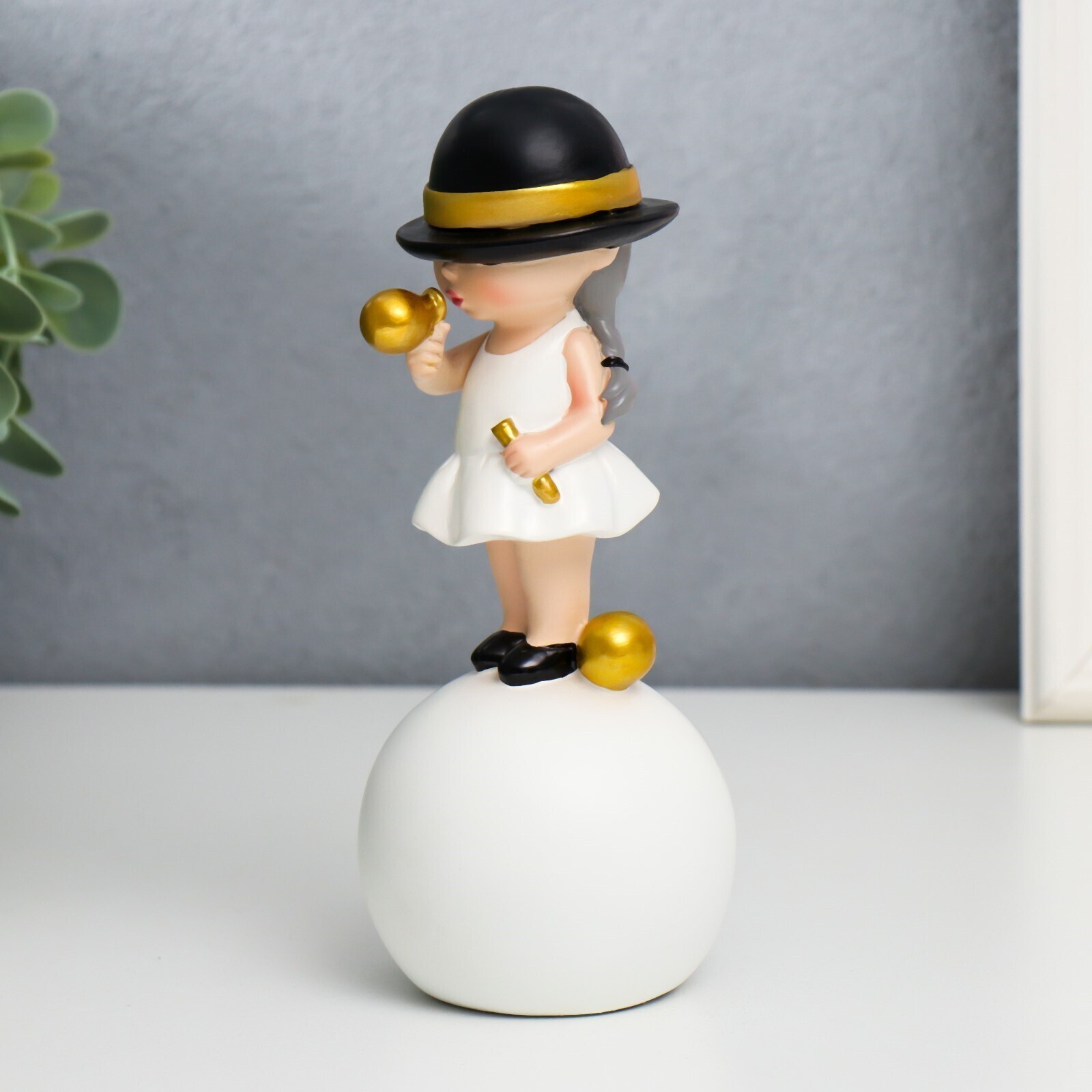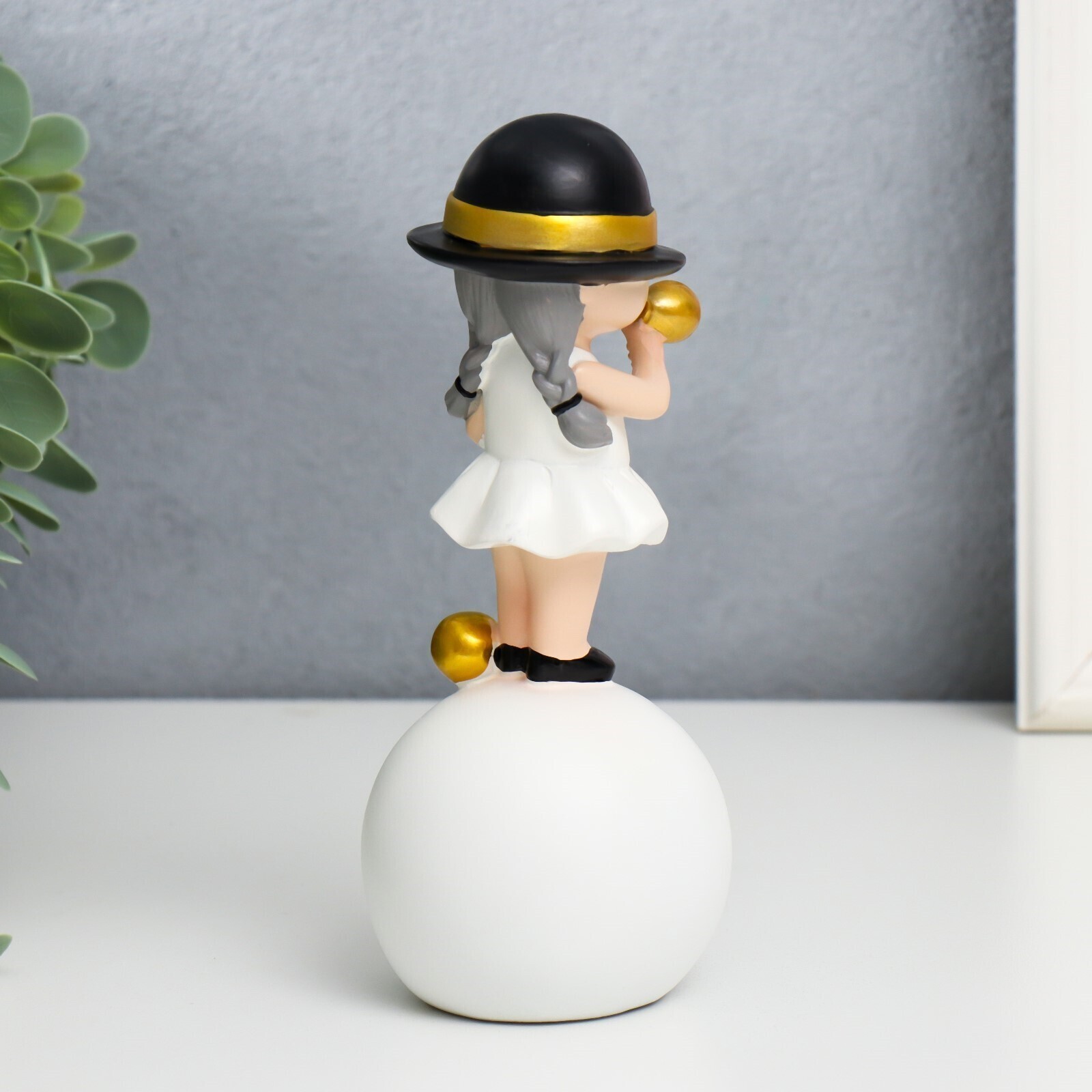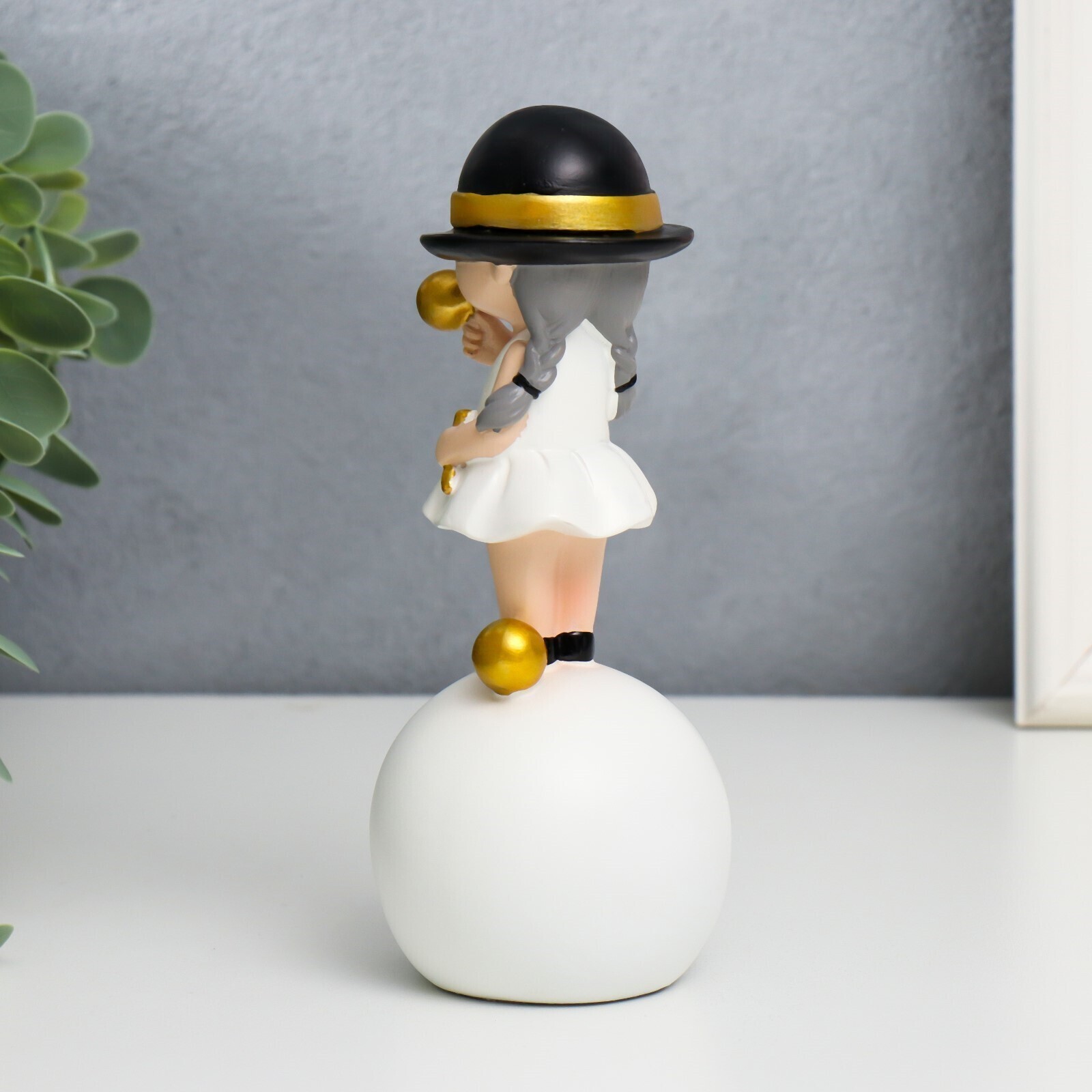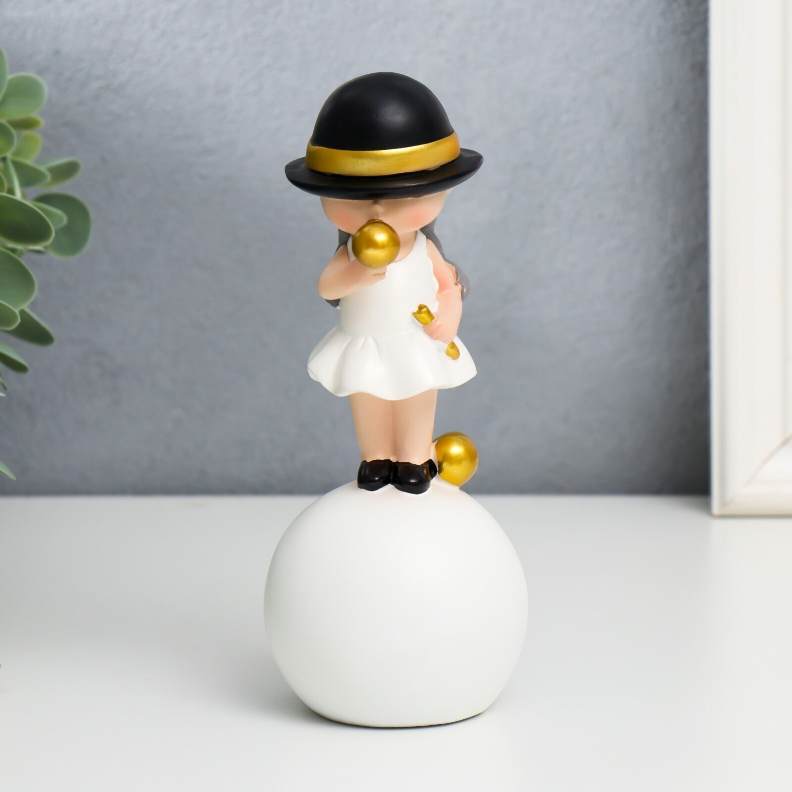 Сувенир полистоун "Малышка в чёрной шляпке, с золотым пузырём на шаре" 15х7х7 см