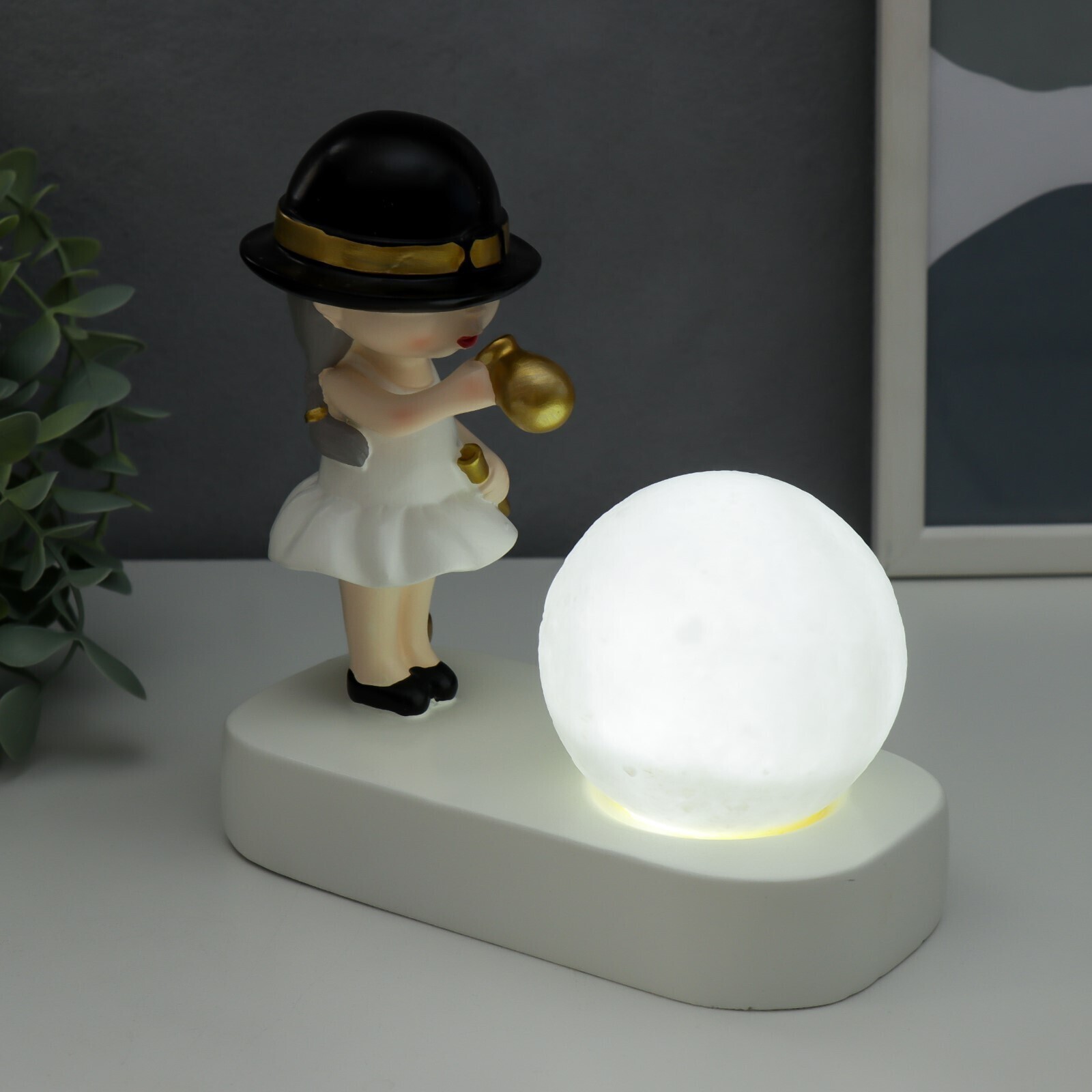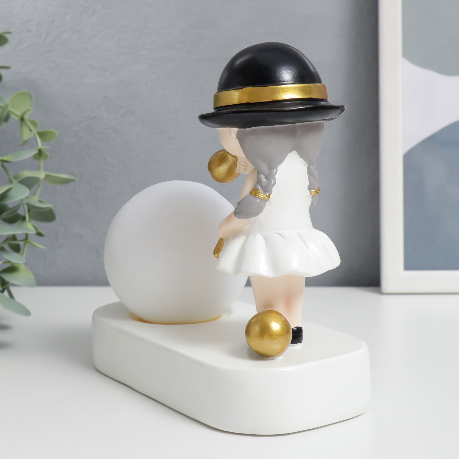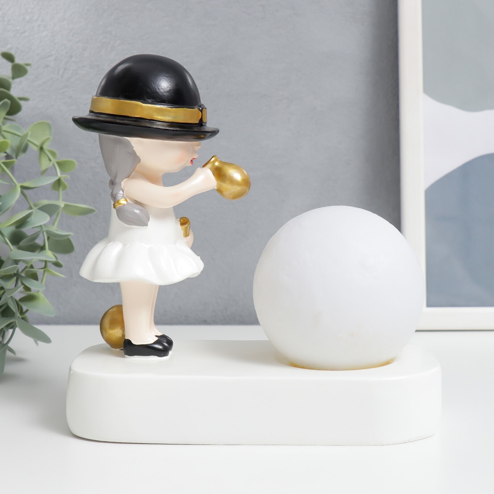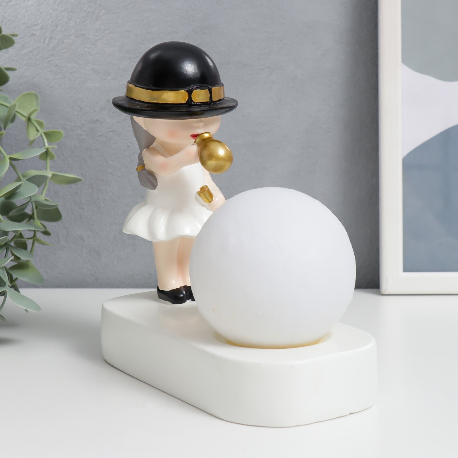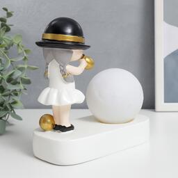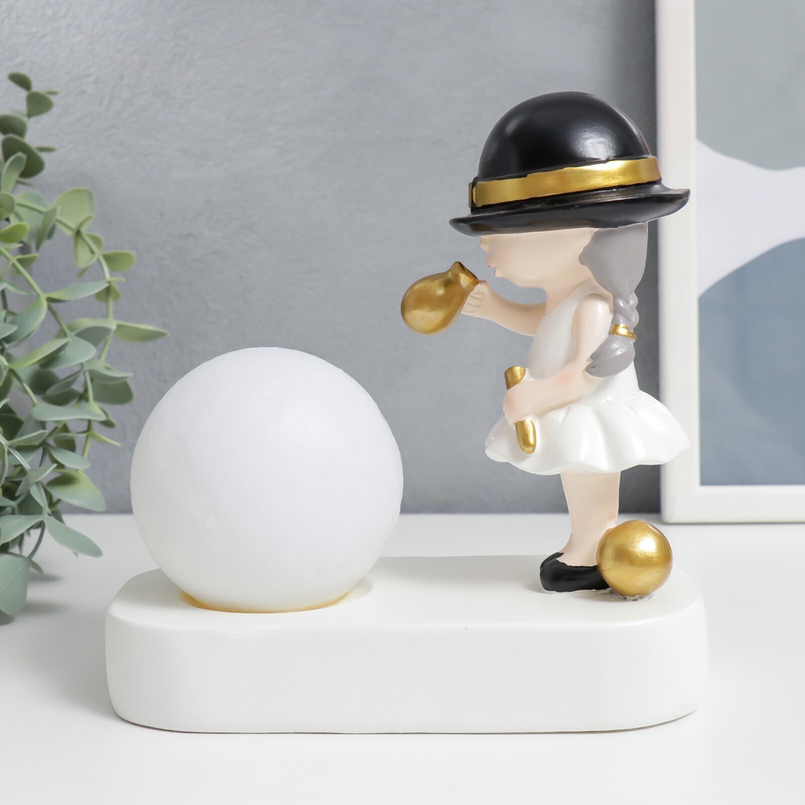 Сувенир полистоун свет "Малышка в чёрной шляпке, с золотым пузырём у шара" 16,5х8х16 см