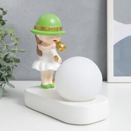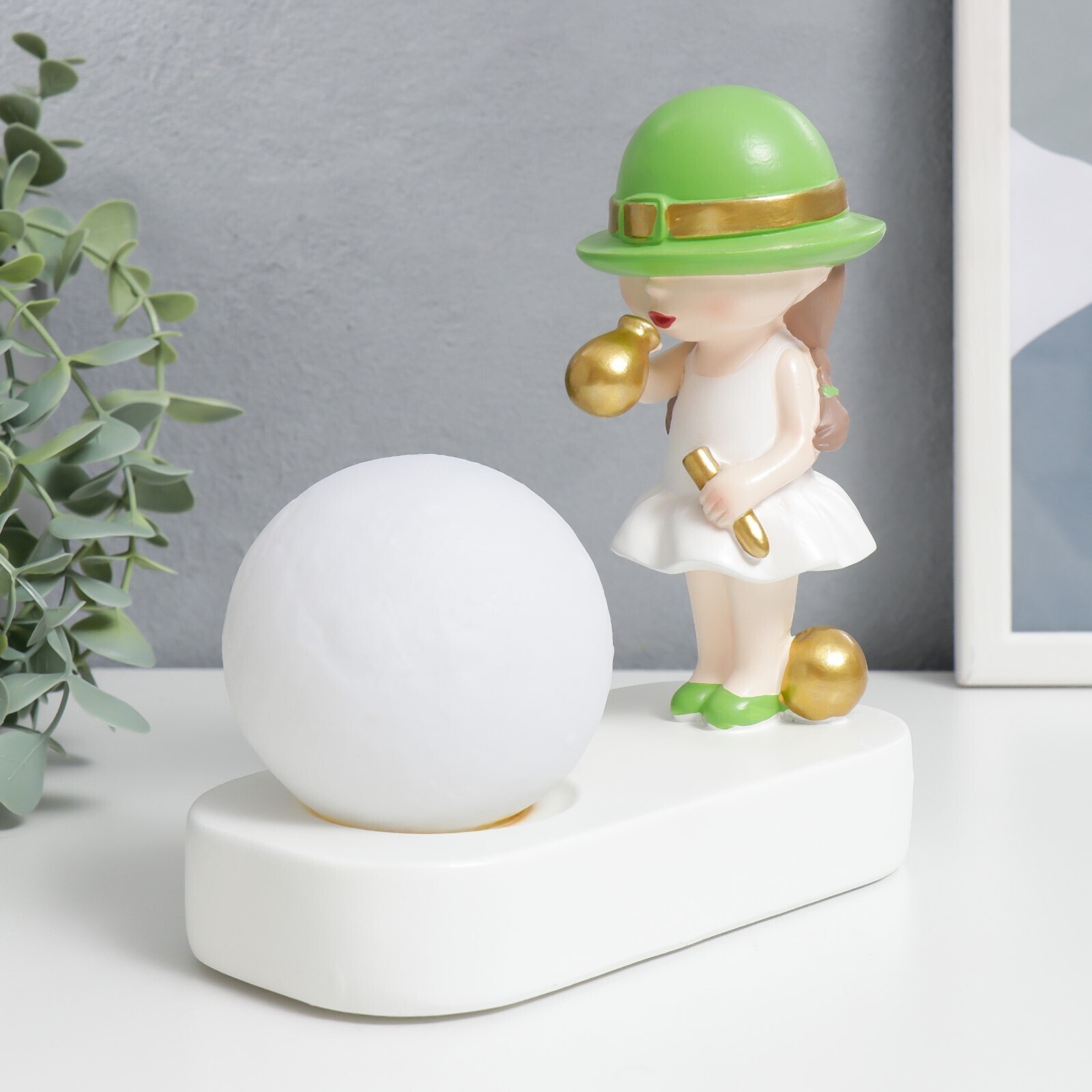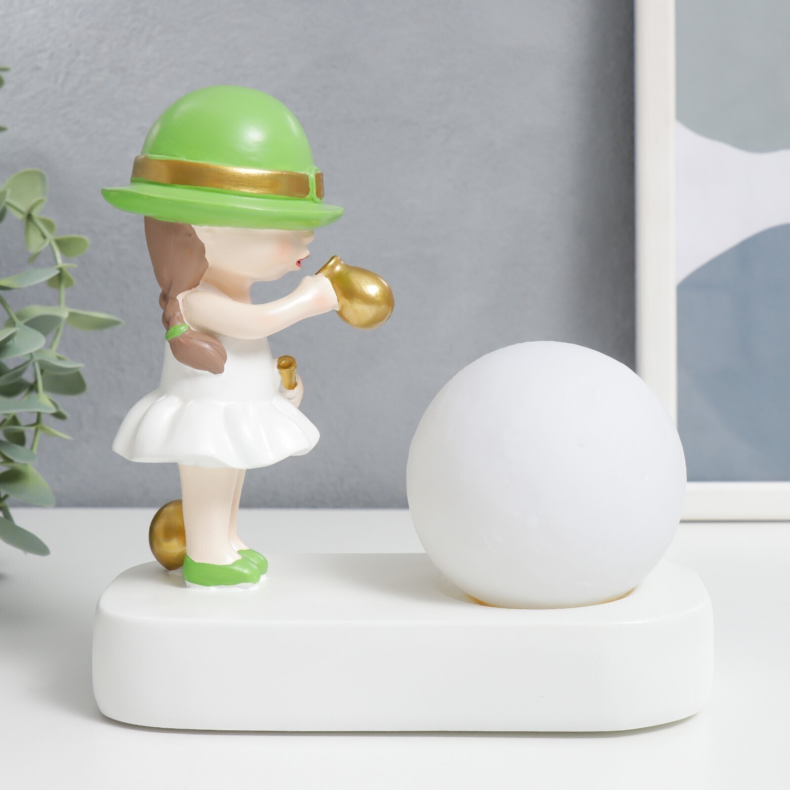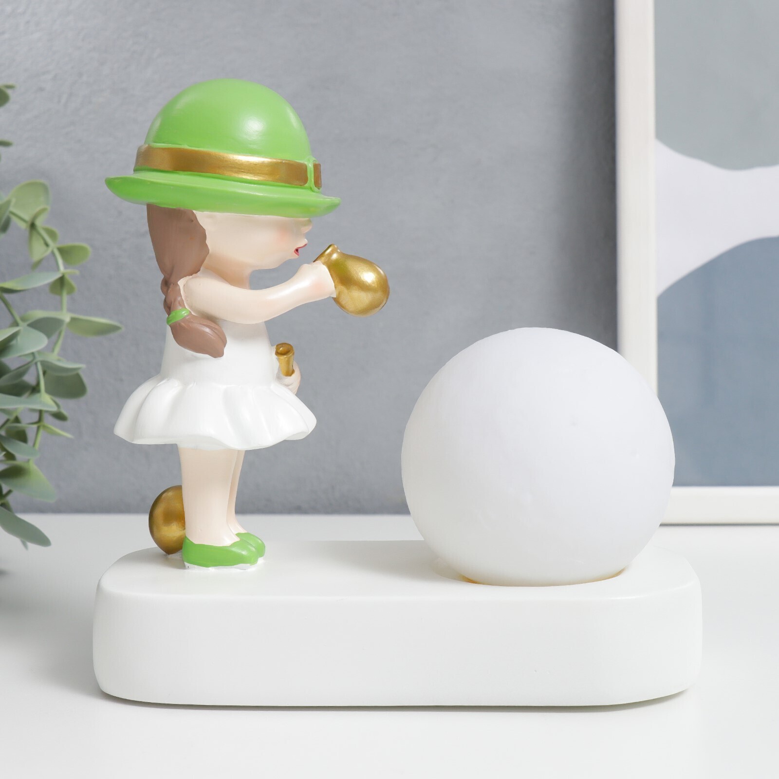 Сувенир полистоун свет "Малышка в зелёной шляпке, с золотым пузырём у шара" 16,5х8х16 см