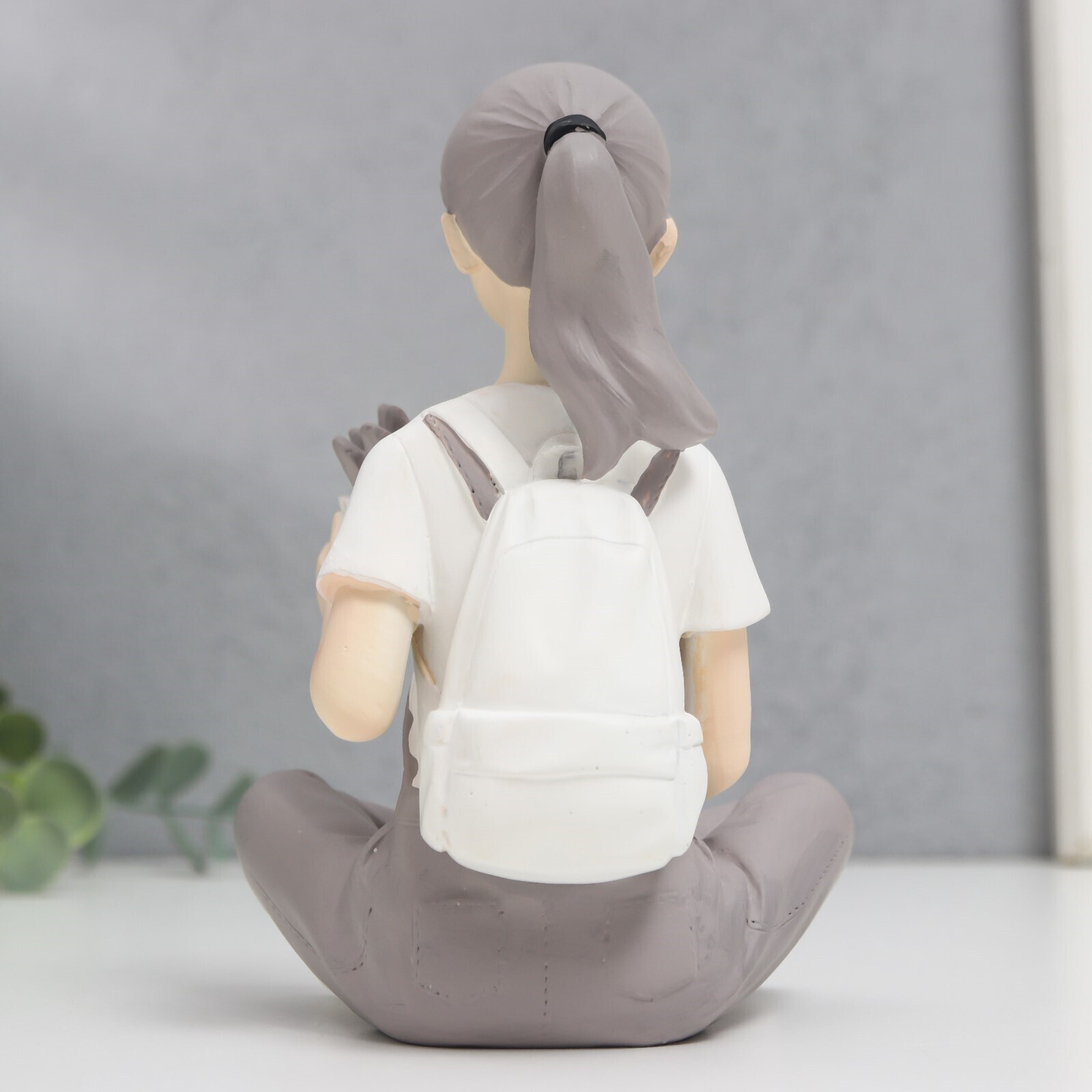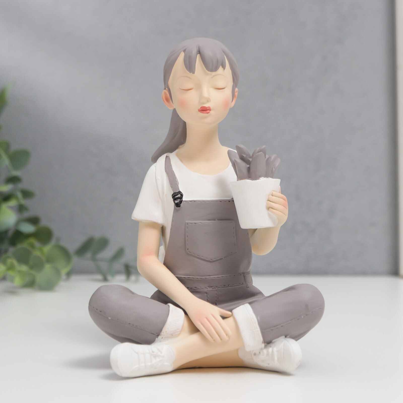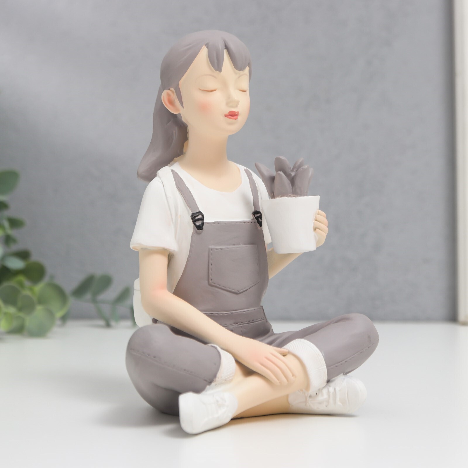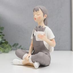 Сувенир полистоун "Девушка с цветком в сером комбинезоне" 10х10х15 см