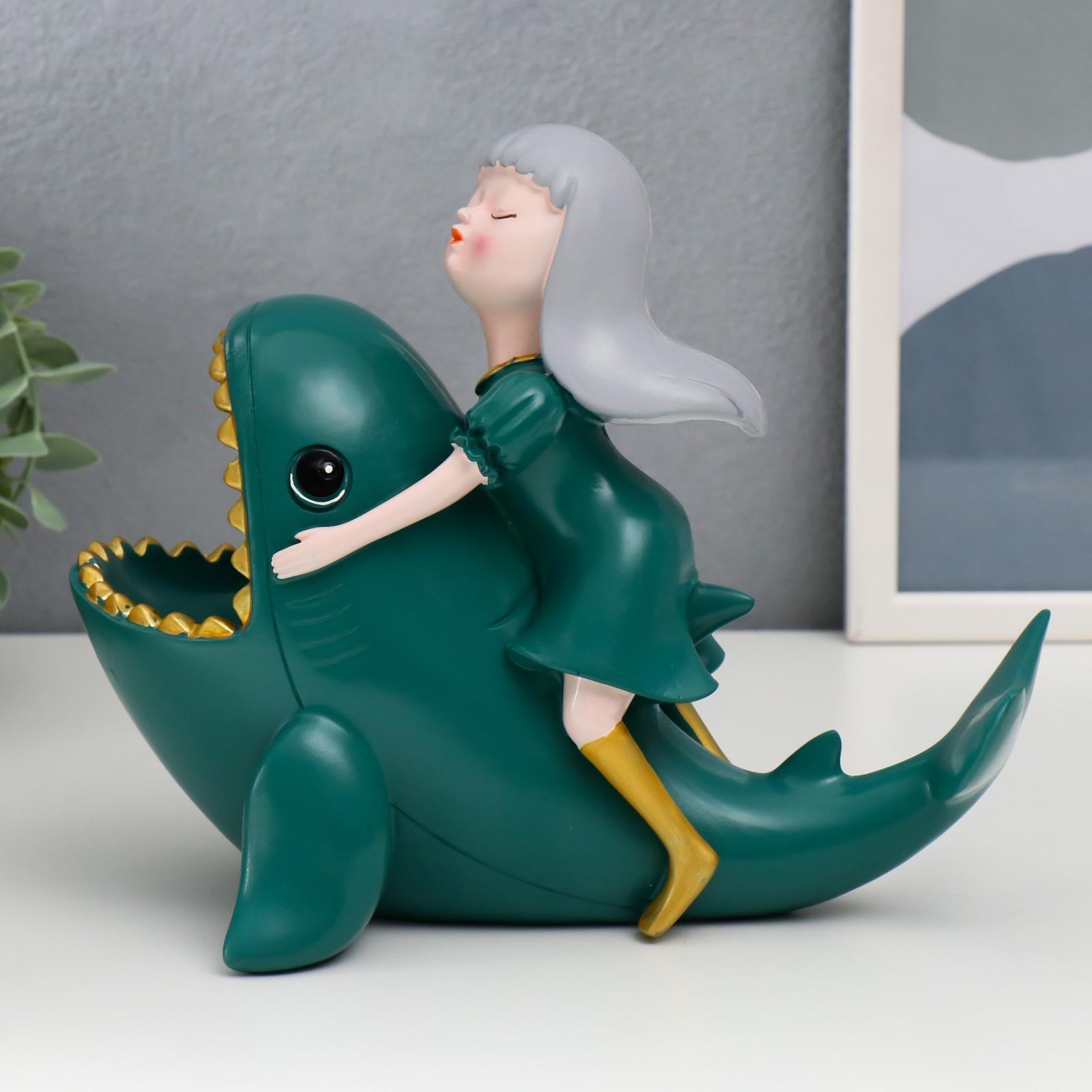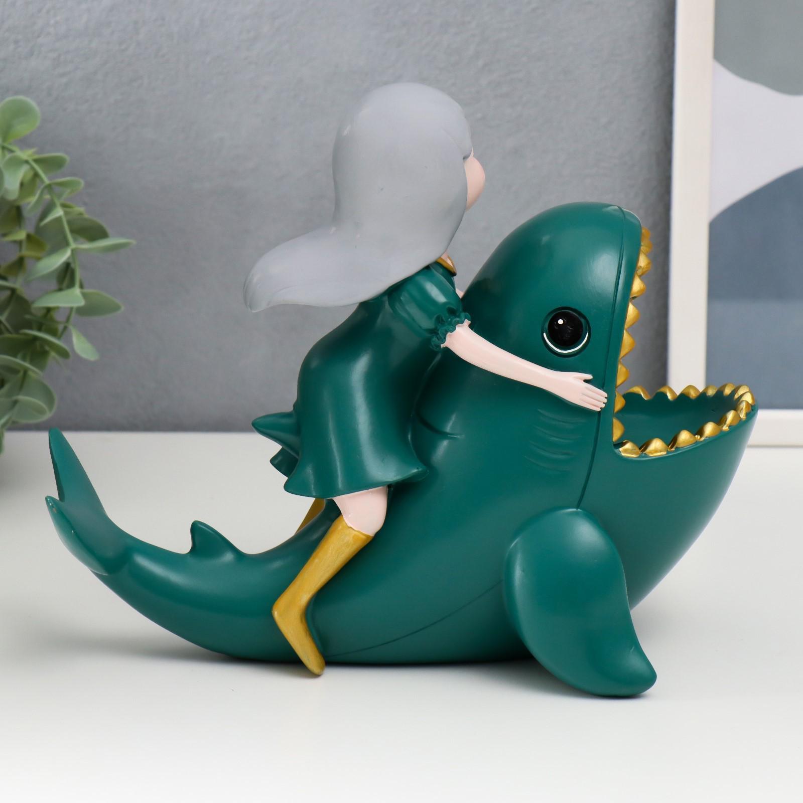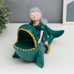 Сувенир полистоун подставка "Малышка верхом на акуле" тёмно-зелёный 18х22х13 см