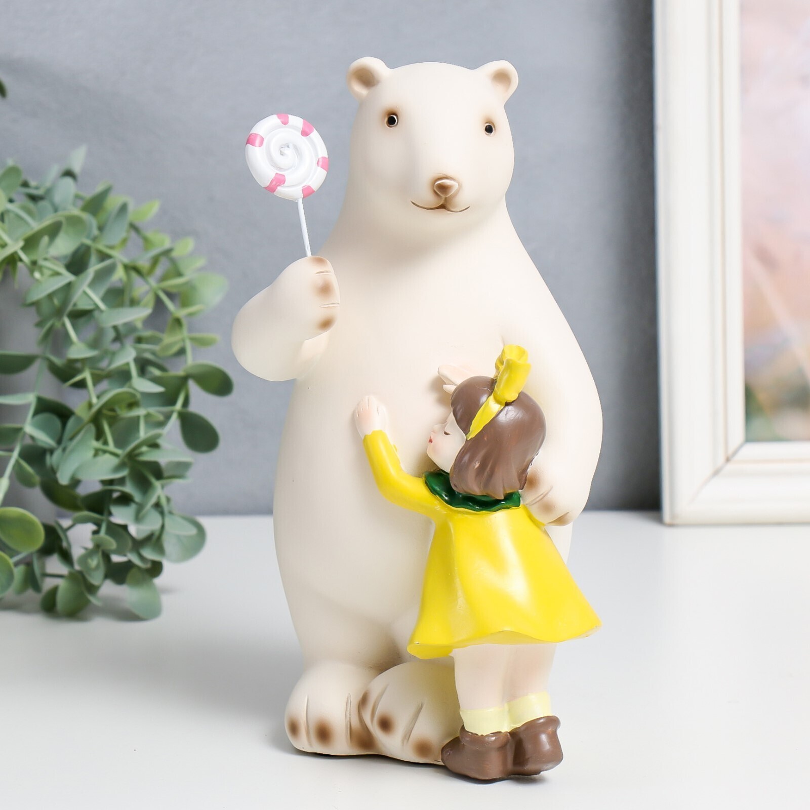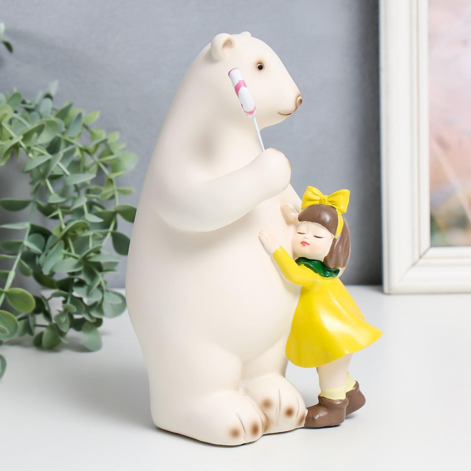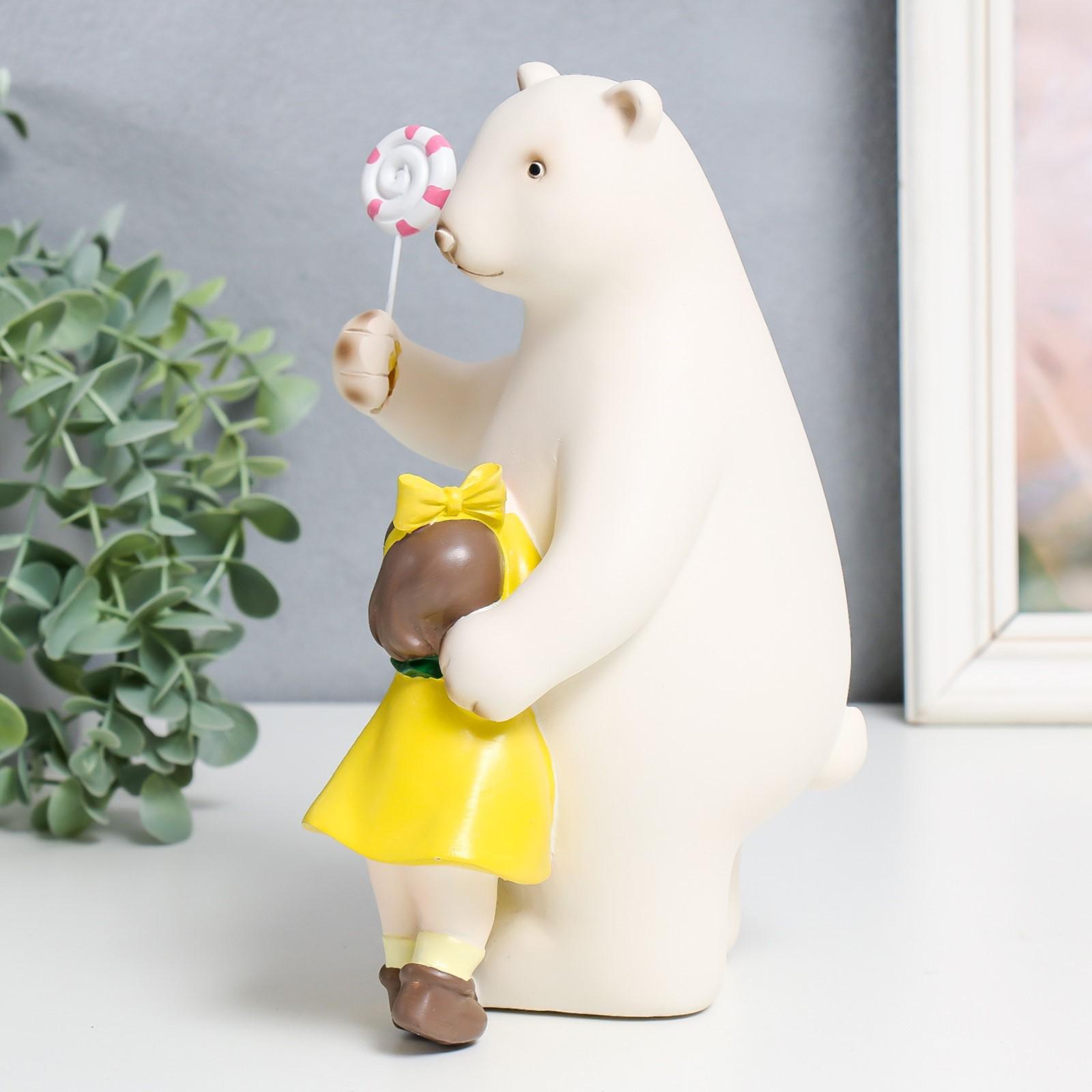 Сувенир полистоун "Медведь обнимает малышку, с леденцом в лапе" 10,5х11х21 см