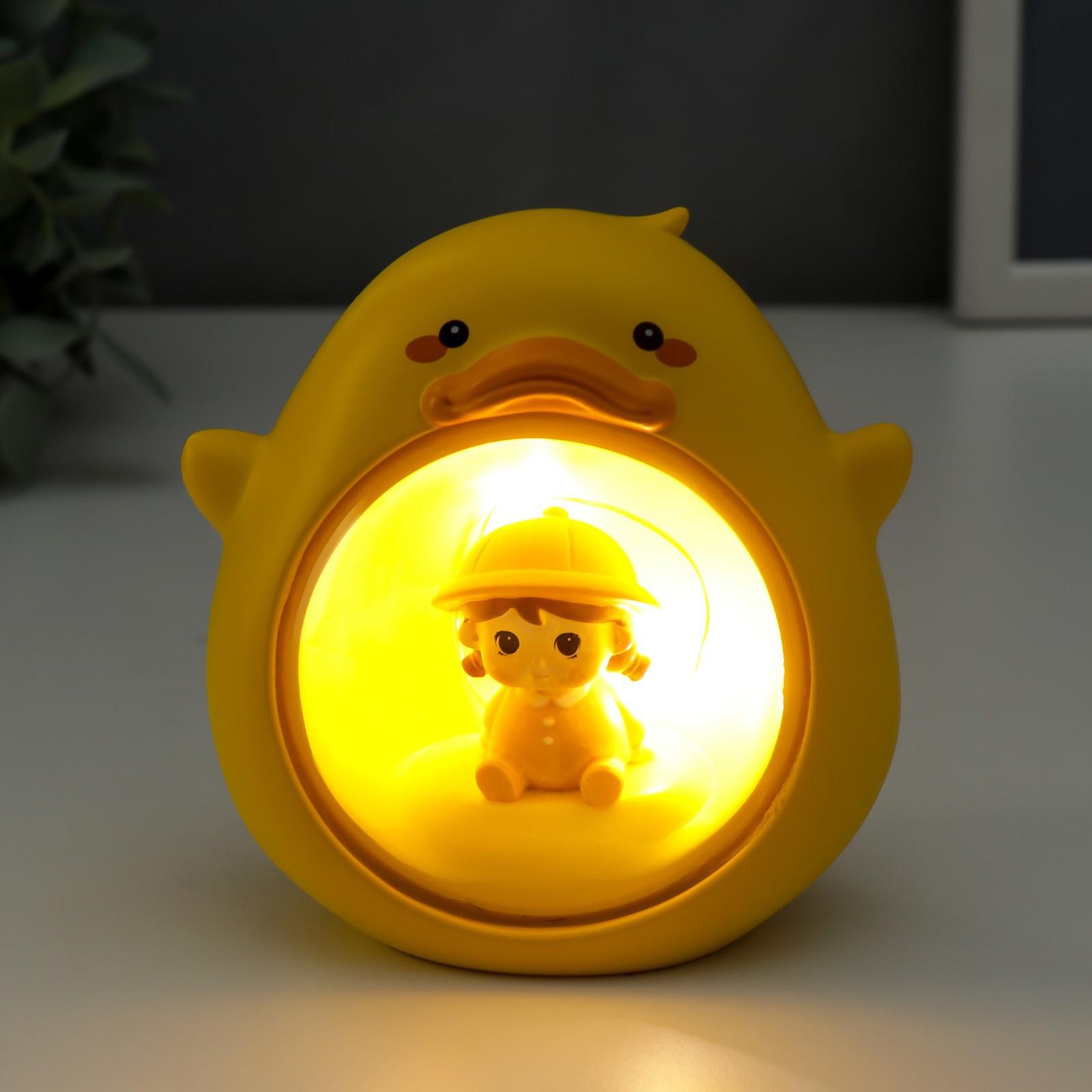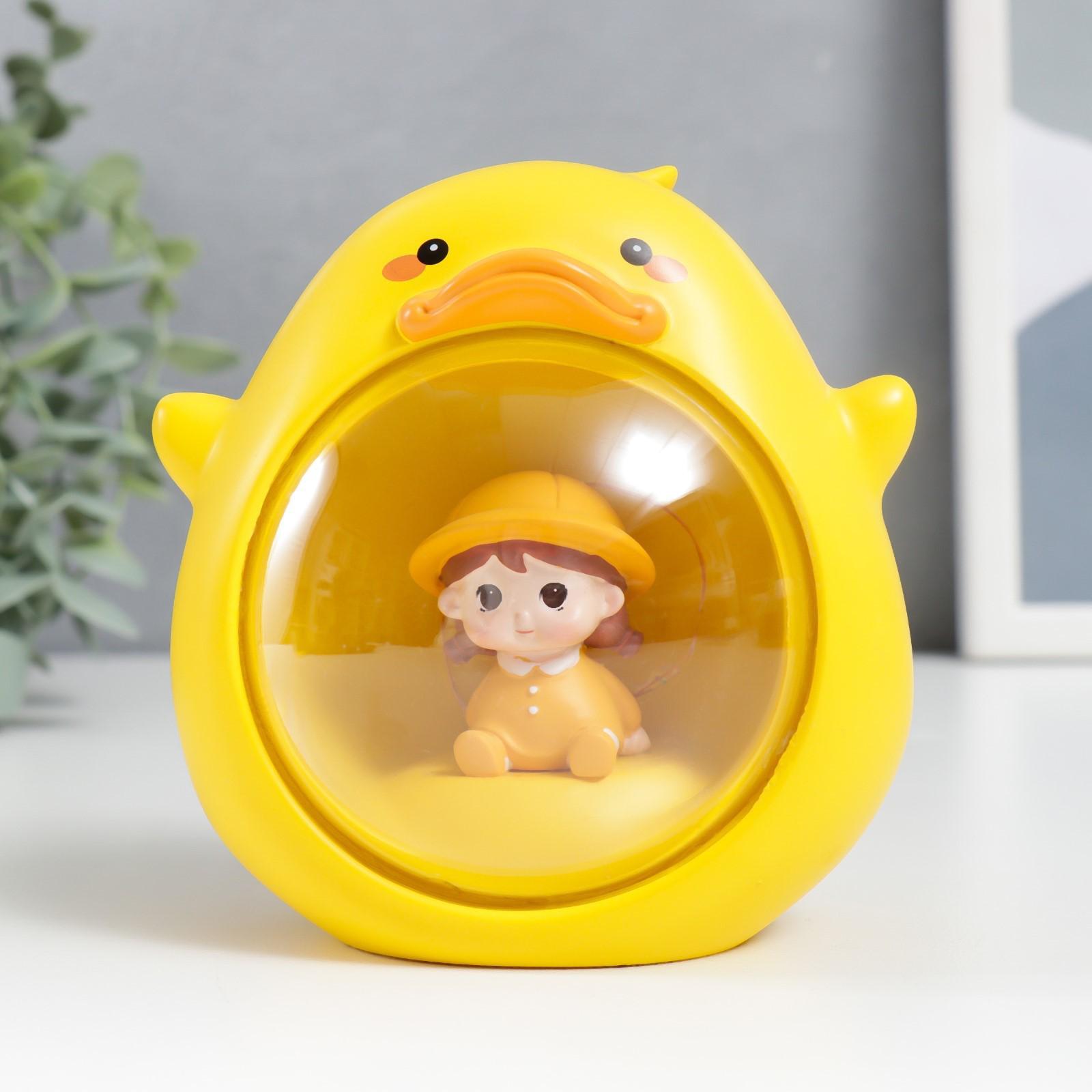 Сувенир полистоун свет "Малышка в жёлтом костюмчике, в утёнке" 10х10 см