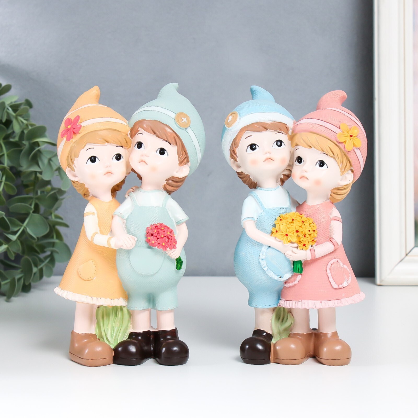 Сувенир полистоун "Детки в колпаках, с букетом" МИКС 9,5х6х17,5 см