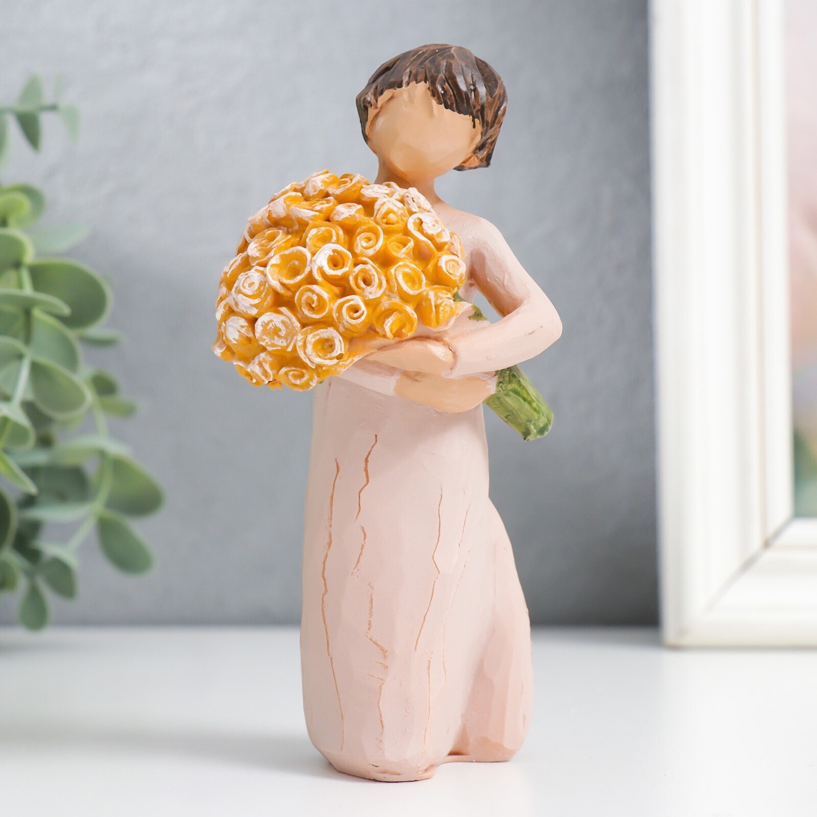 Сувенир полистоун "Девушка с букетом роз" 4х4,5х13 см