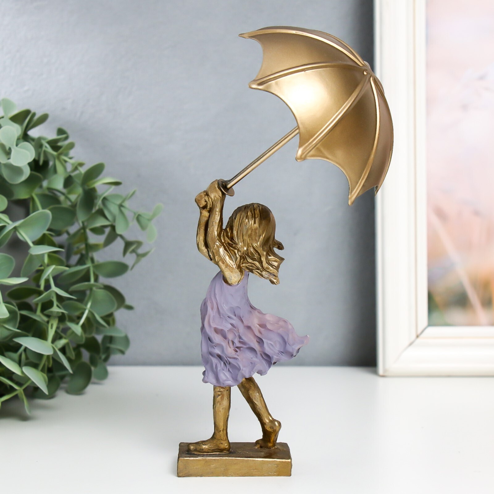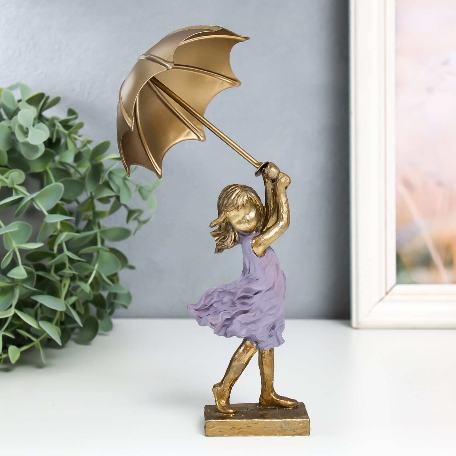 Сувенир полистоун "Девочка с зонтиком на ветру" 4,5х6,5х14 см