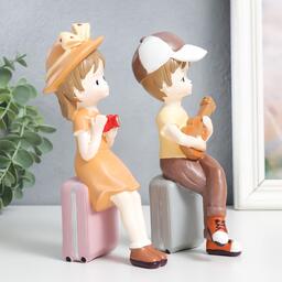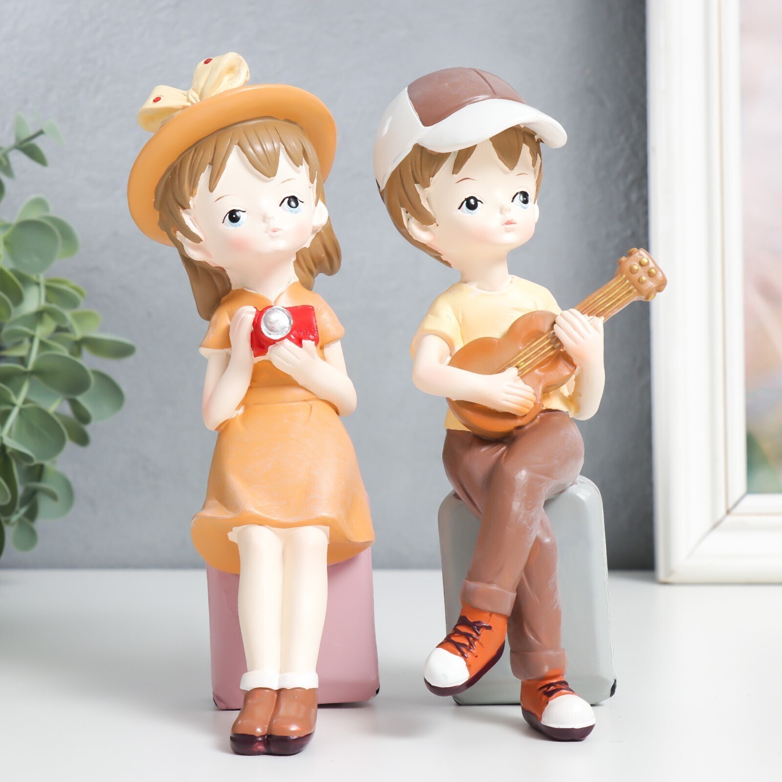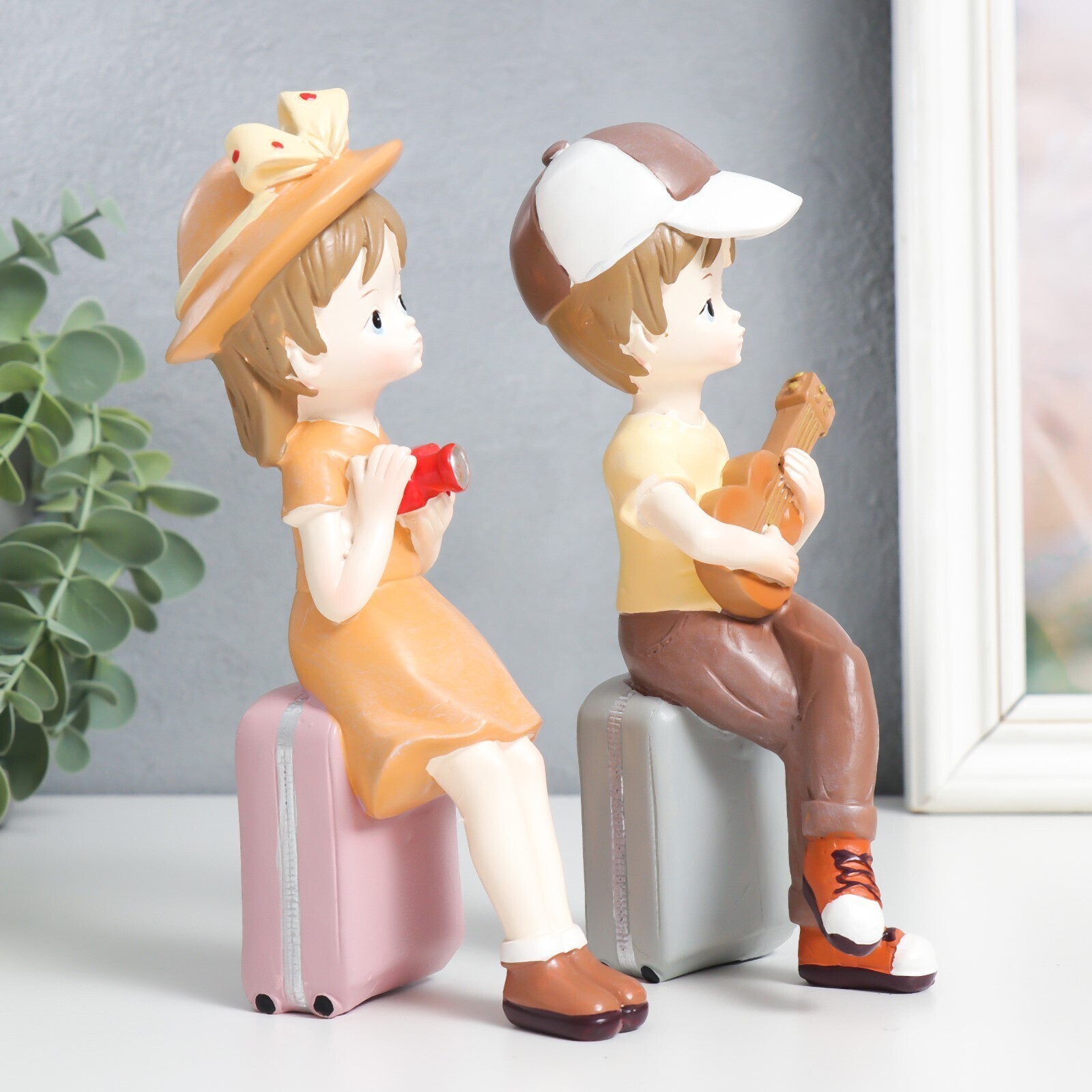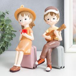 Сувенир полистоун "Мальчик с гитарой/Девочка с фотоаппаратом на чемодане" МИКС 8х4,5х17 см
