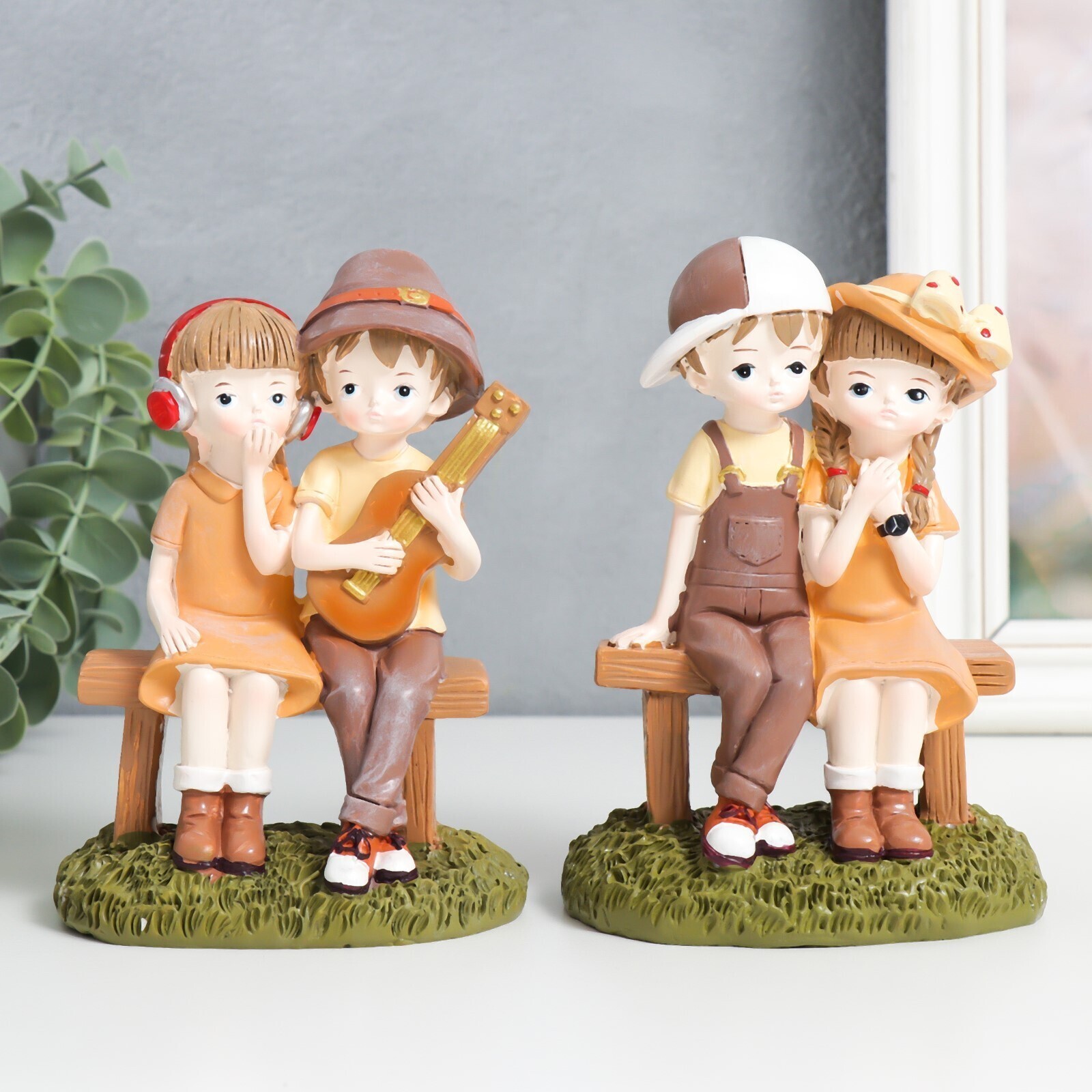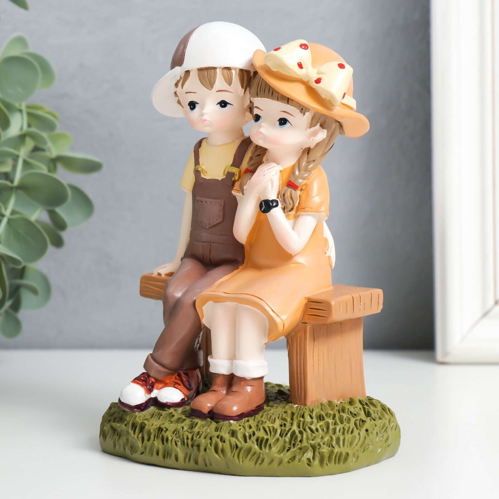 Сувенир полистоун "Мальчик и девочка на скамейке" МИКС 7х10,3х14,5 см