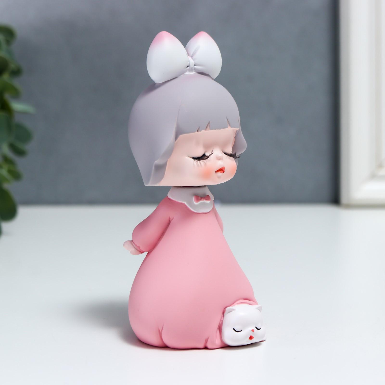 Сувенир полистоун "Малышка с котиком" 12,1х4,6х5,2 см