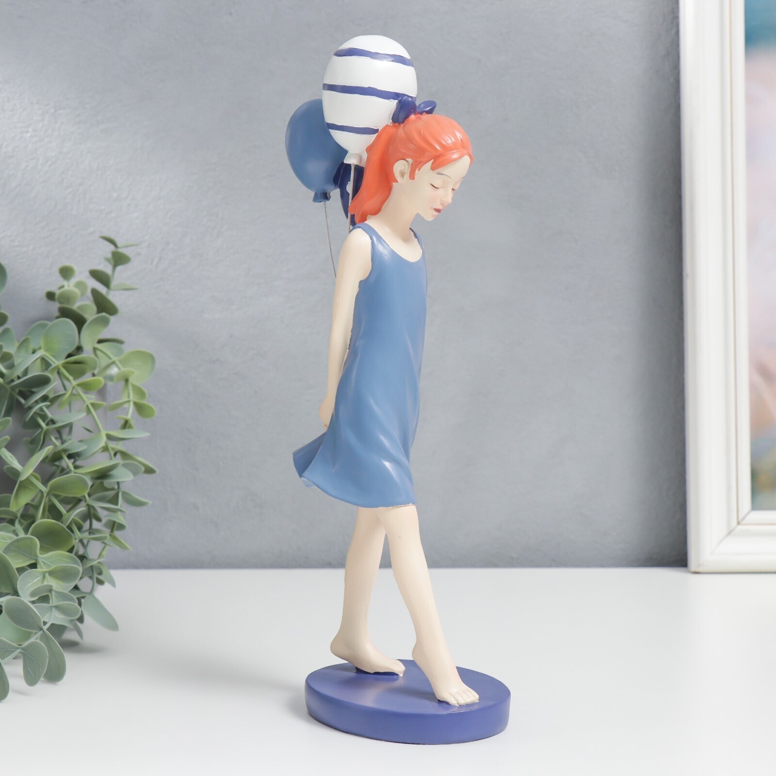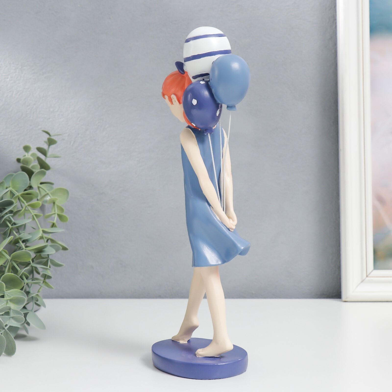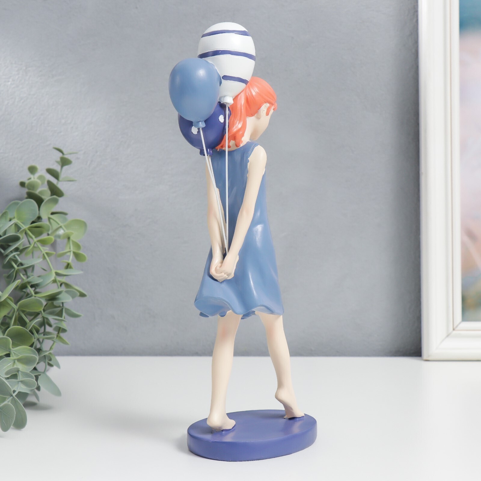 Сувенир полистоун "Девочка в синем сарафане с воздушными шарами за спиной" 26х6,5х9 см