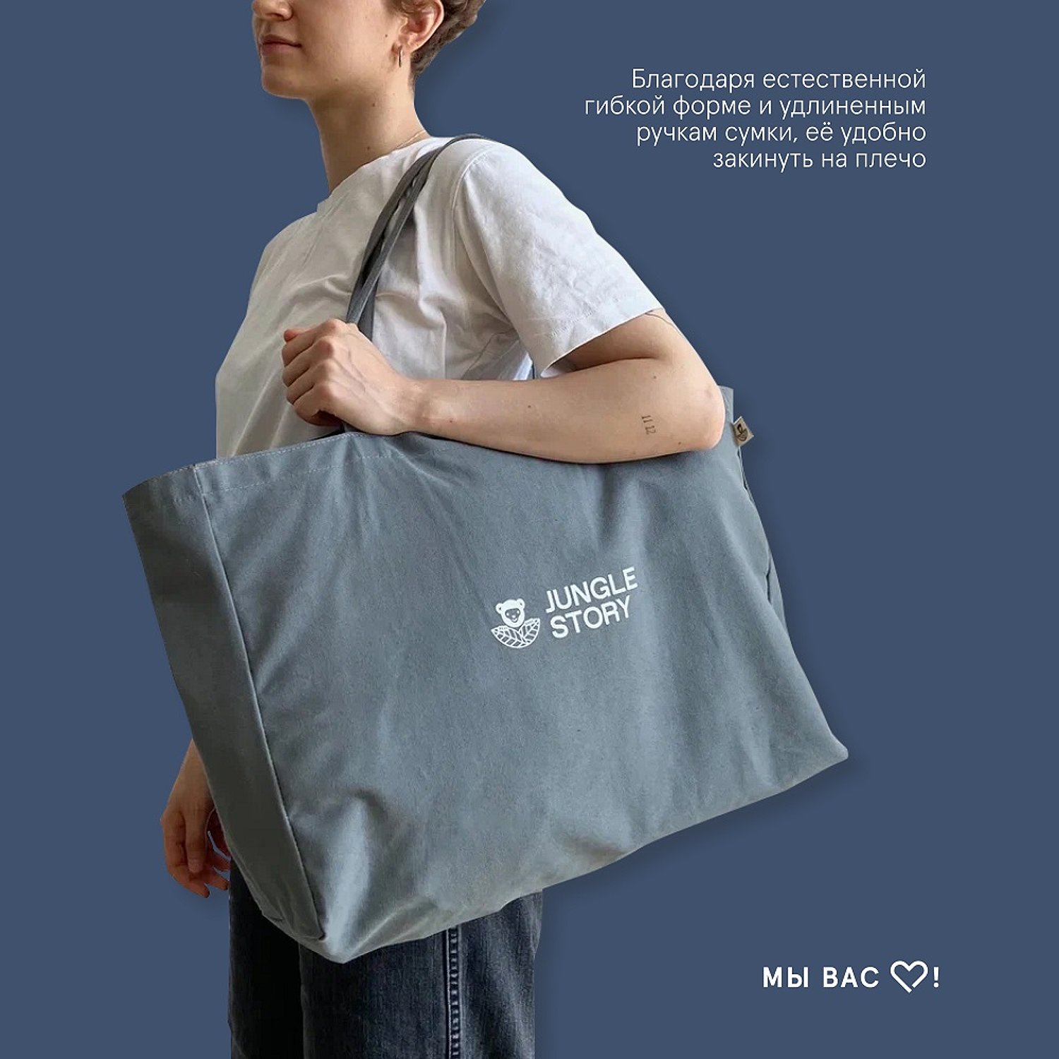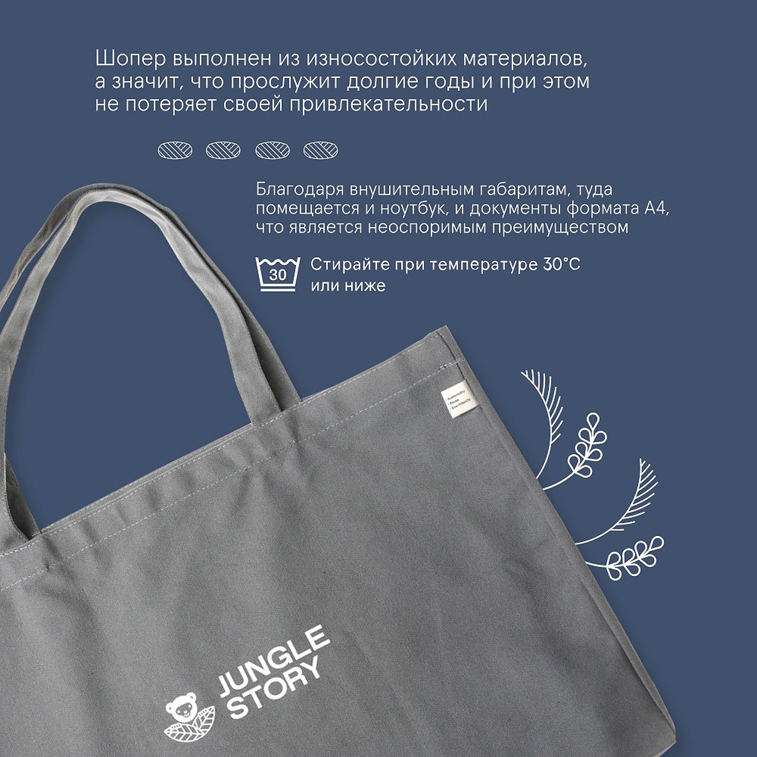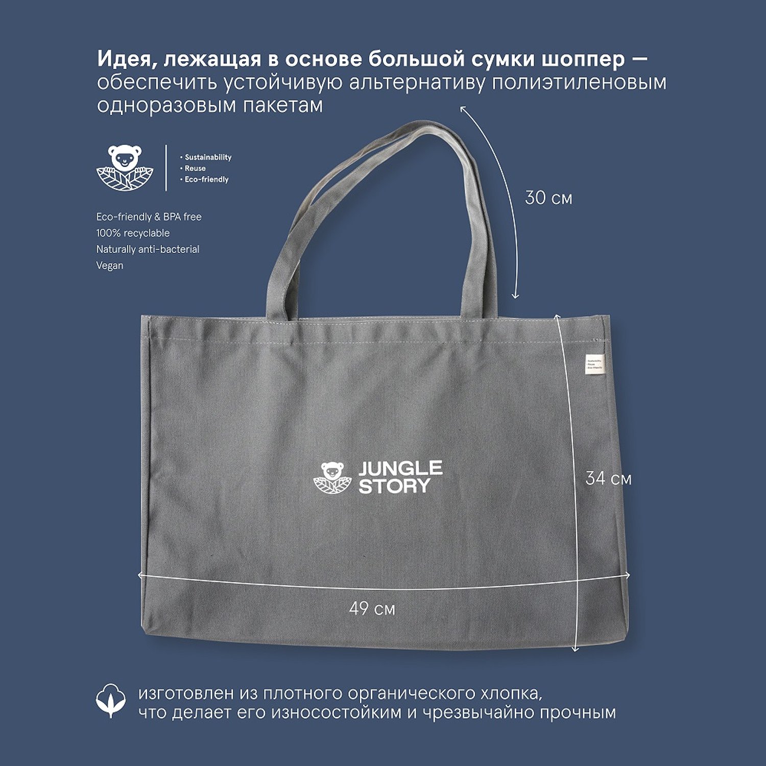 Сумка шоппер Jungle Story большая серая на плечо 60720