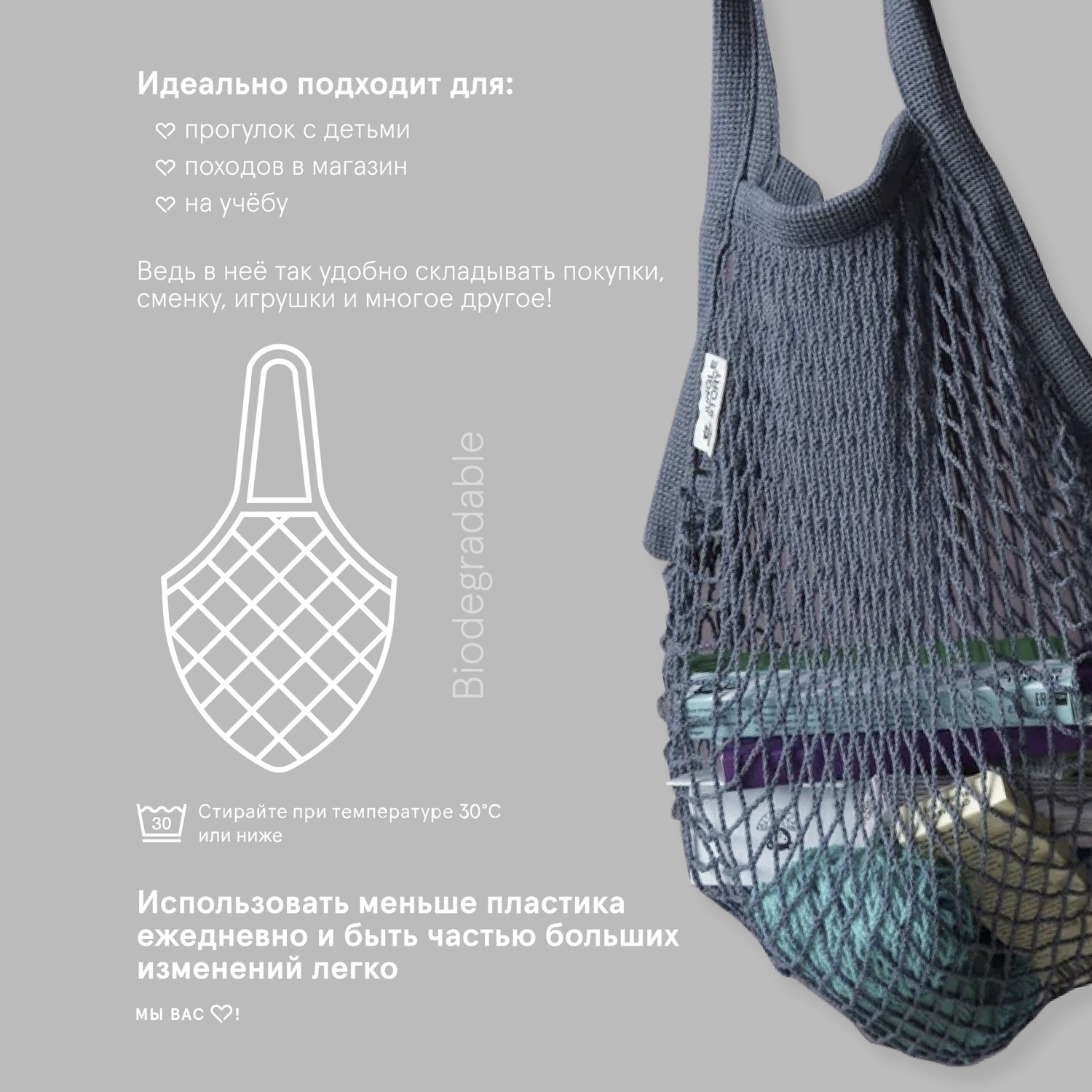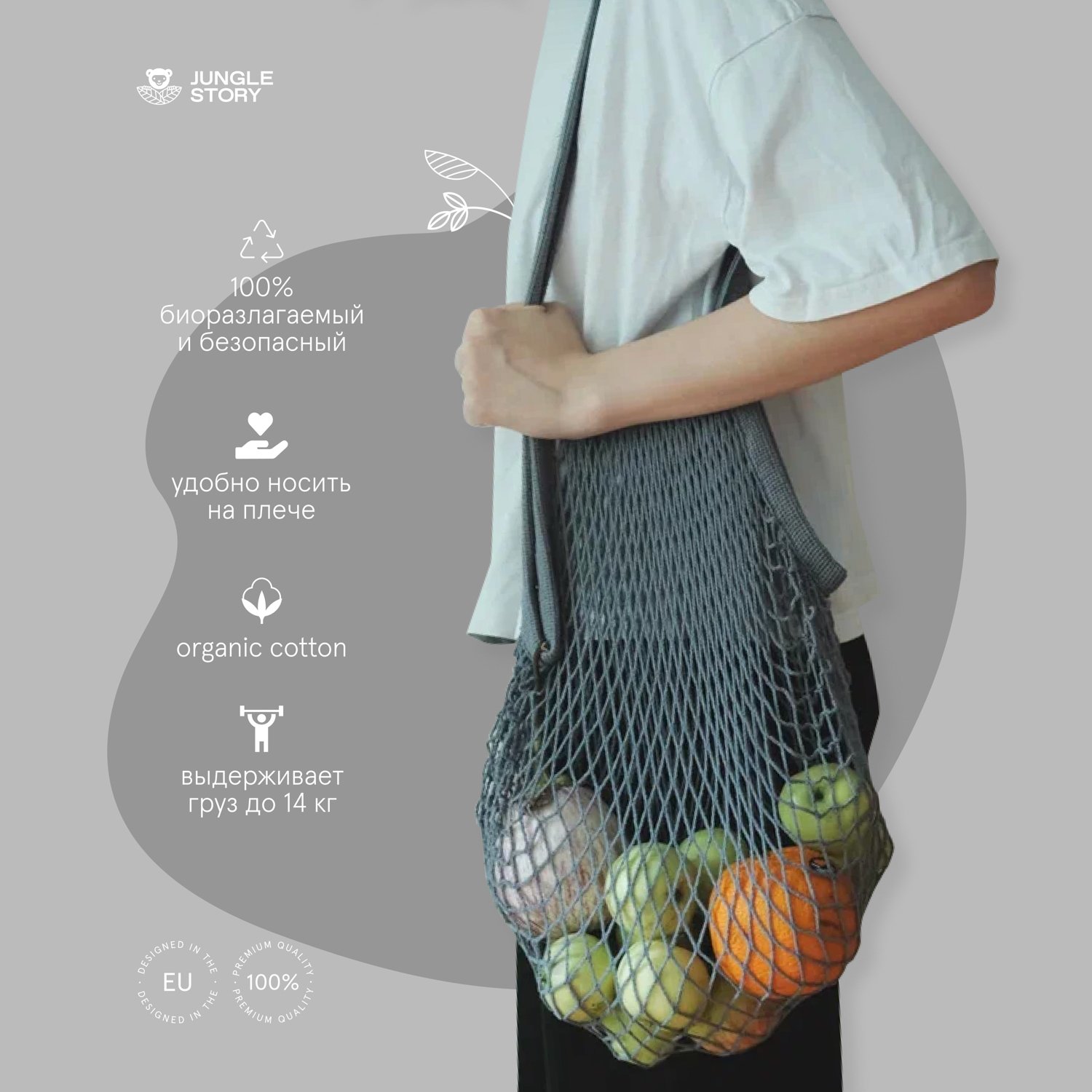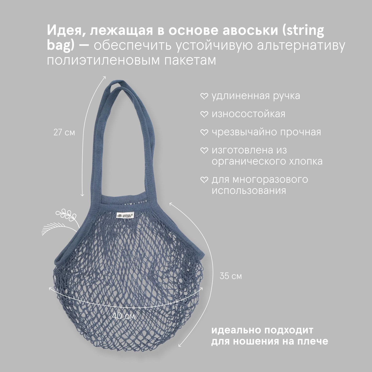 Сумка Jungle Story авоська с ручкой на плечо серая 0621