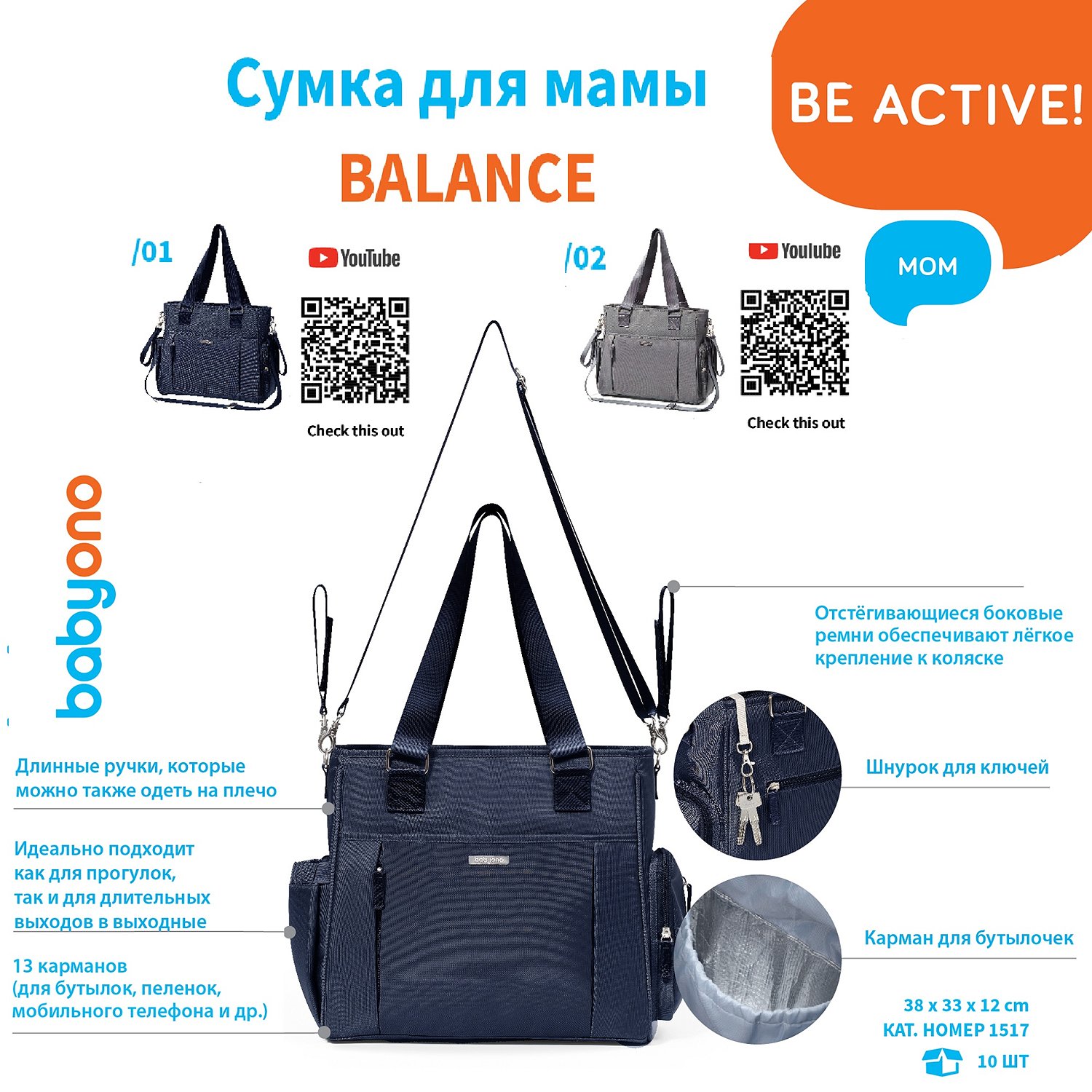 Сумка Babyono для мамы Balance серая Арт.1517/02