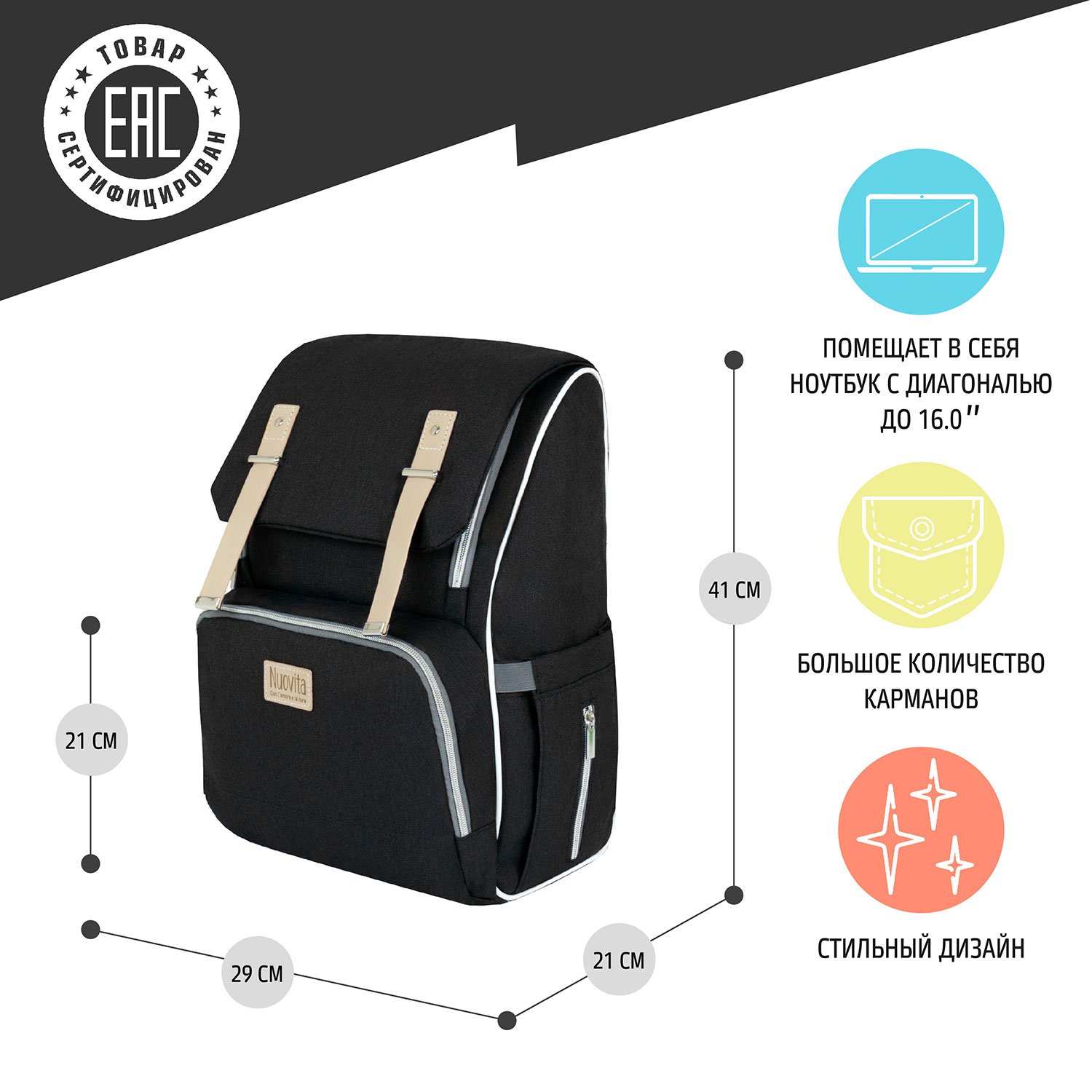 Рюкзак для мамы Nuovita CAPCAP rotta Черный NUO_M0215_3016