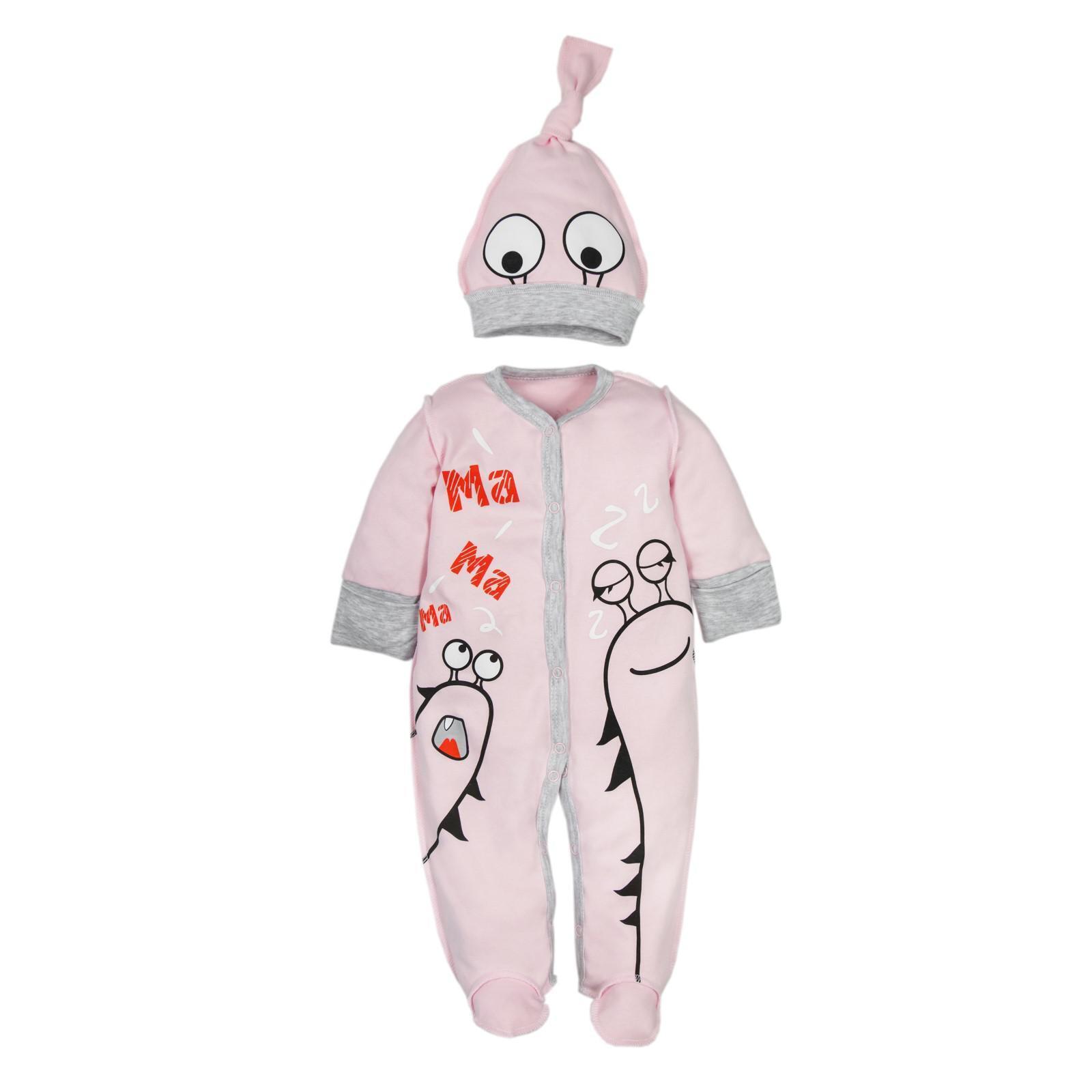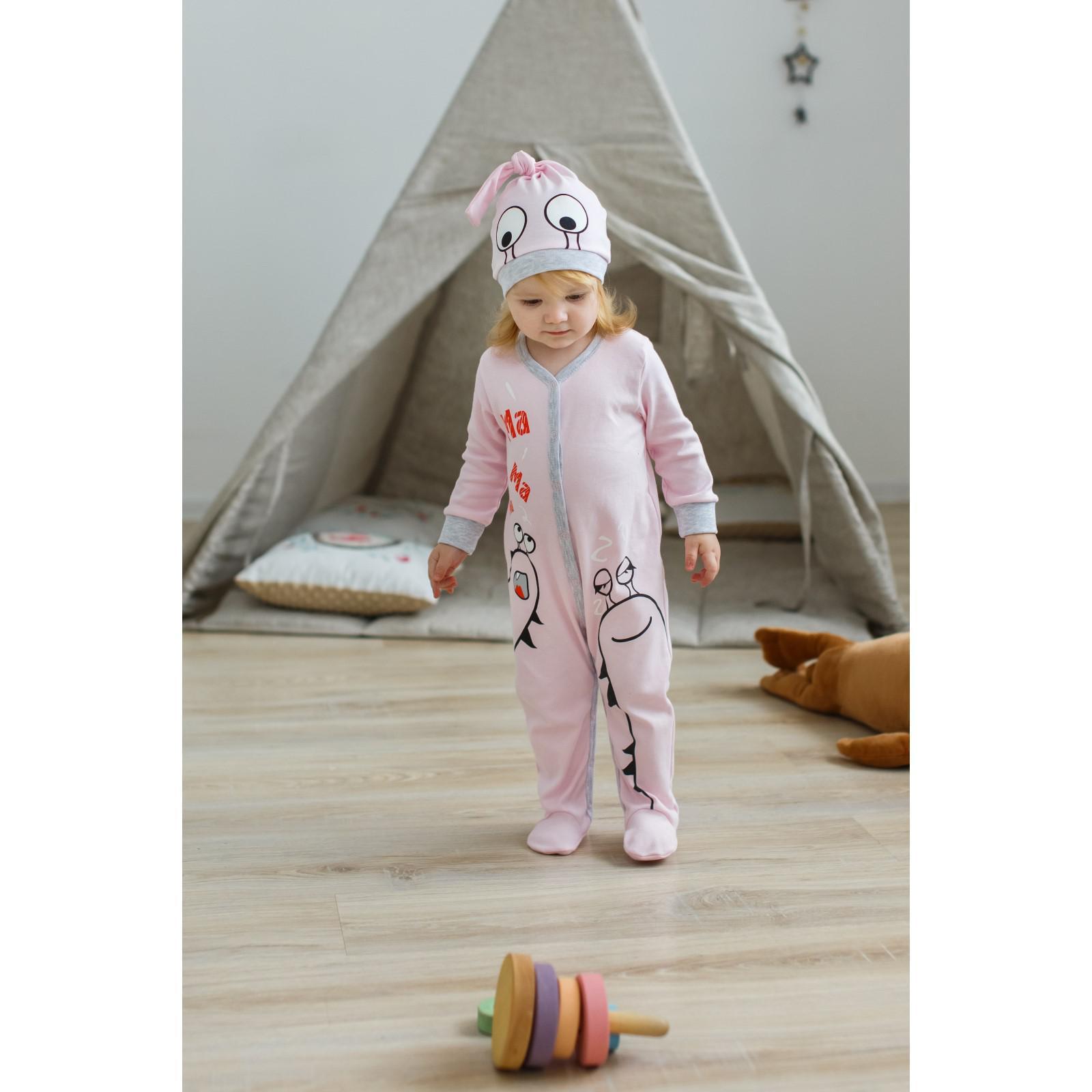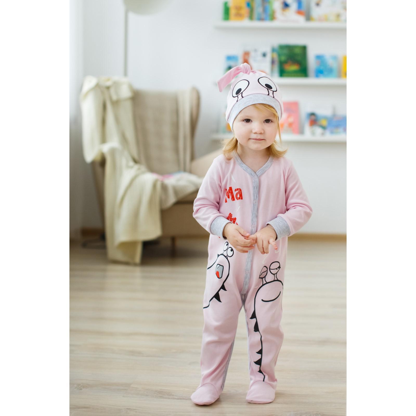 Комбинезон слип детский с шапочкой, рост 74 см, цвет розовый
