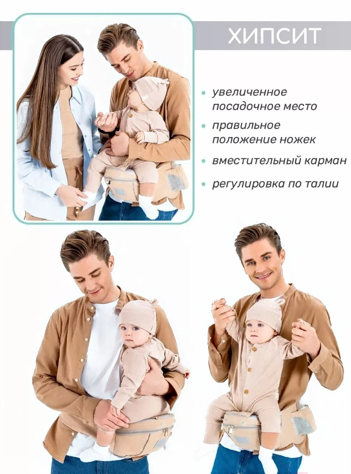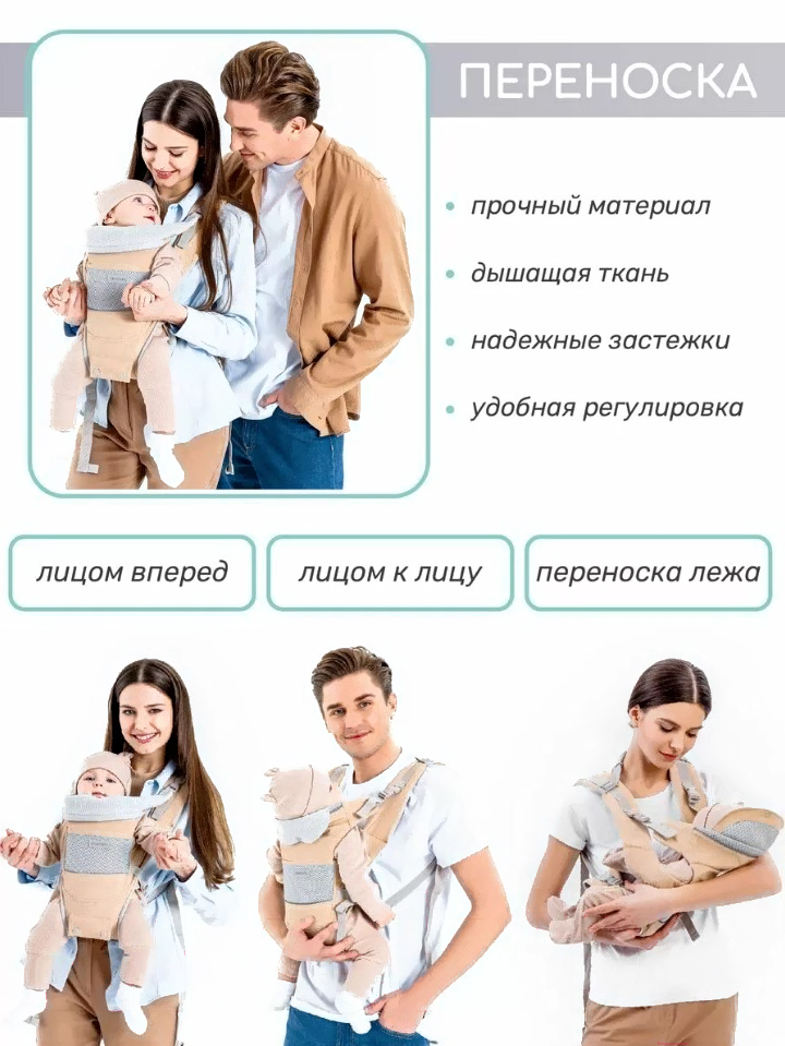 • Размещение ребенка лицом к родителю, на боку родителя, для сна/кормления, спиной к родителю, за спиной, сидя