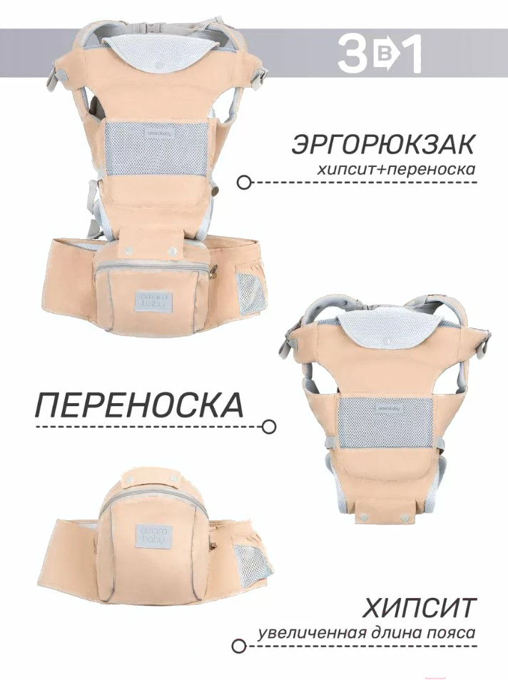 Эрго-рюкзак Amarobaby Carry / AB22-30CARRY/03 (бежевый)
