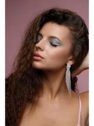 Серьги бижутерия длинные вечерние висячие женские блестящие большие сережки со стразами висюльки