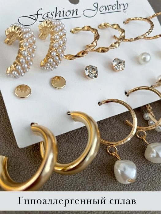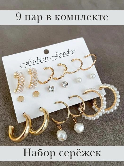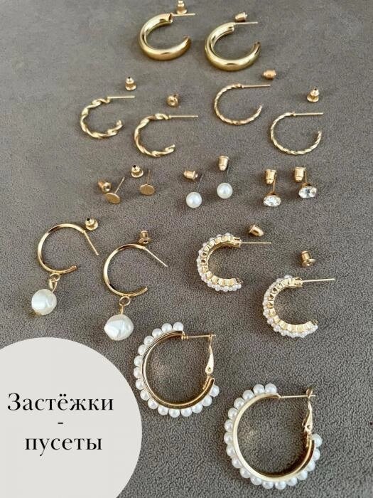 Серьги бижутерия женские набор сережки пусеты под золото кольца гвоздики