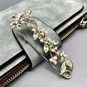 Бижутерия брошь Каменный цветок 7.5 см Цвет Белое серебро