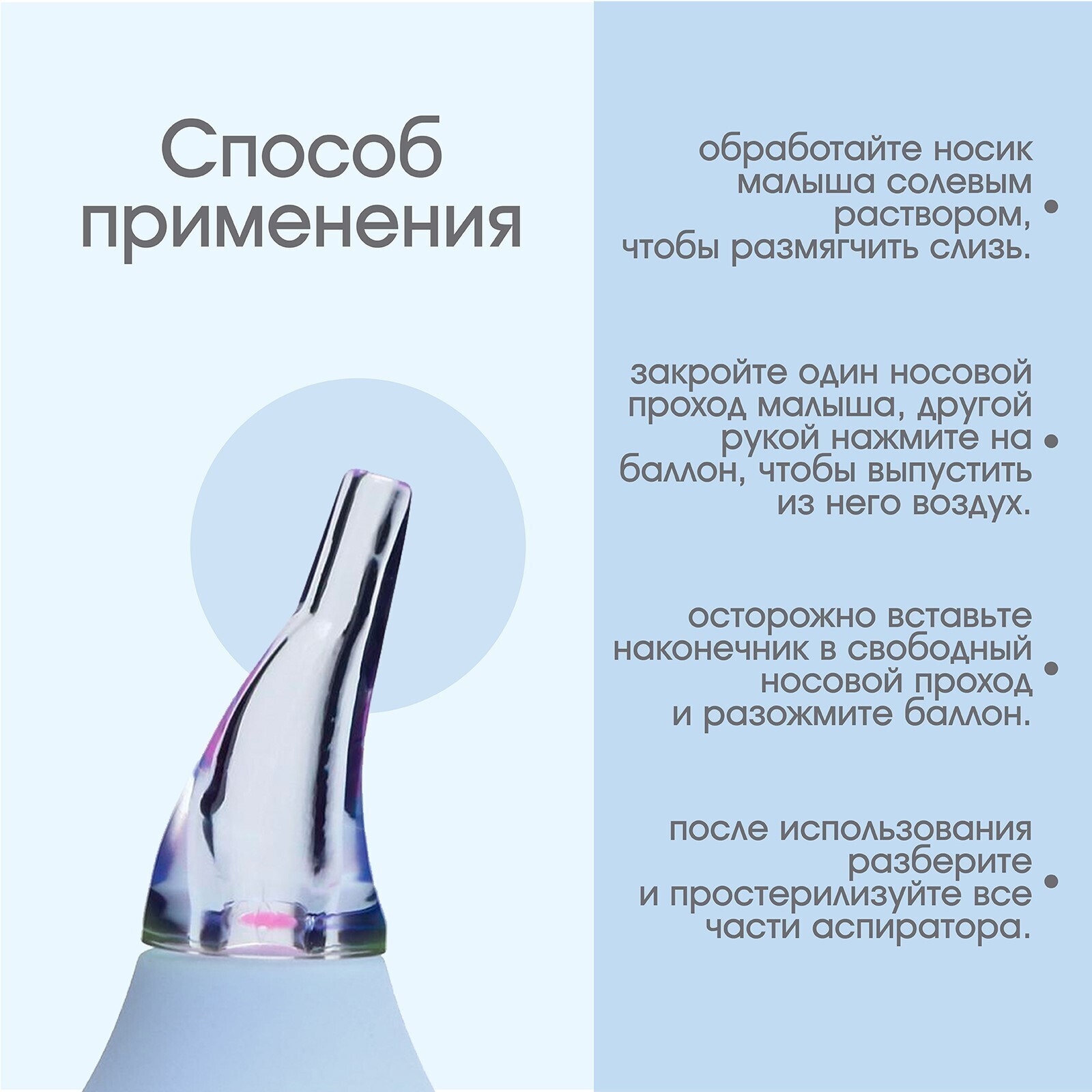 Аспиратор предназначен для малышей, которые ещё не могут самостоятельно очищать носик. Компактный прибор уберёт выделения и вернёт нормальный ритм дыхания.