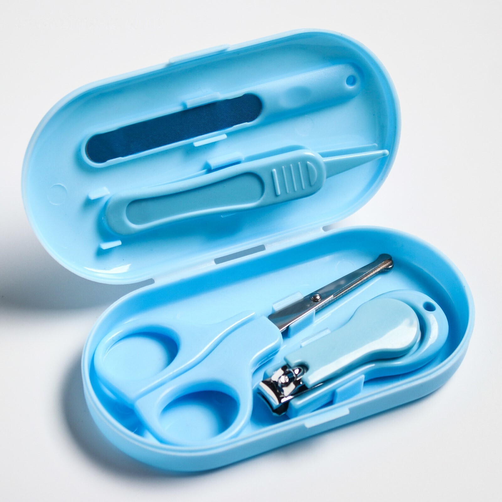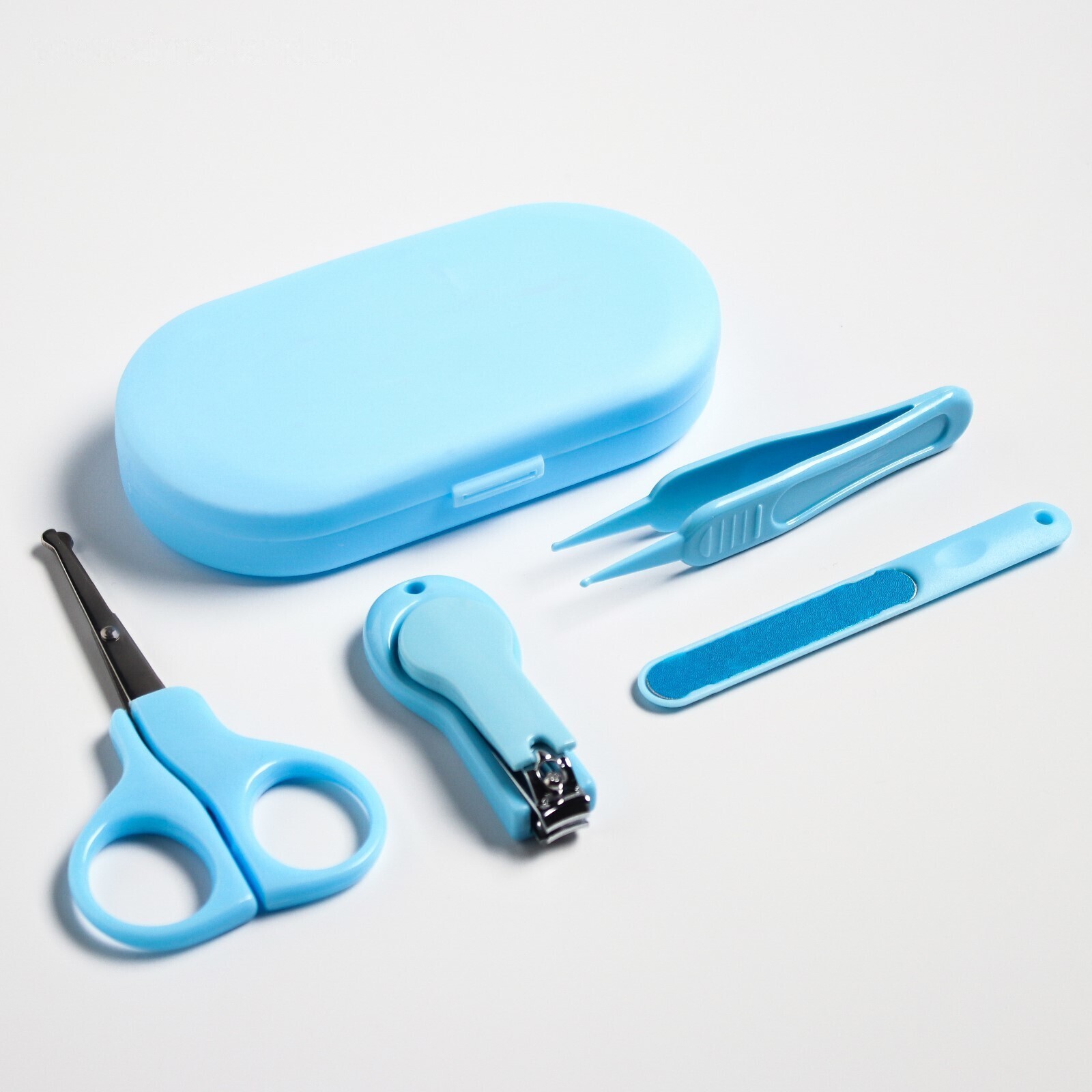 Детский маникюрный набор (ножницы, книпсер, пилка, пинцет), цвет голубой