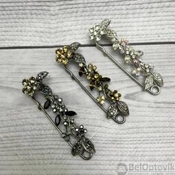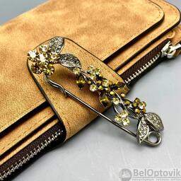 Бижутерия брошь Каменный цветок 7.5 см Цвет Янтарный