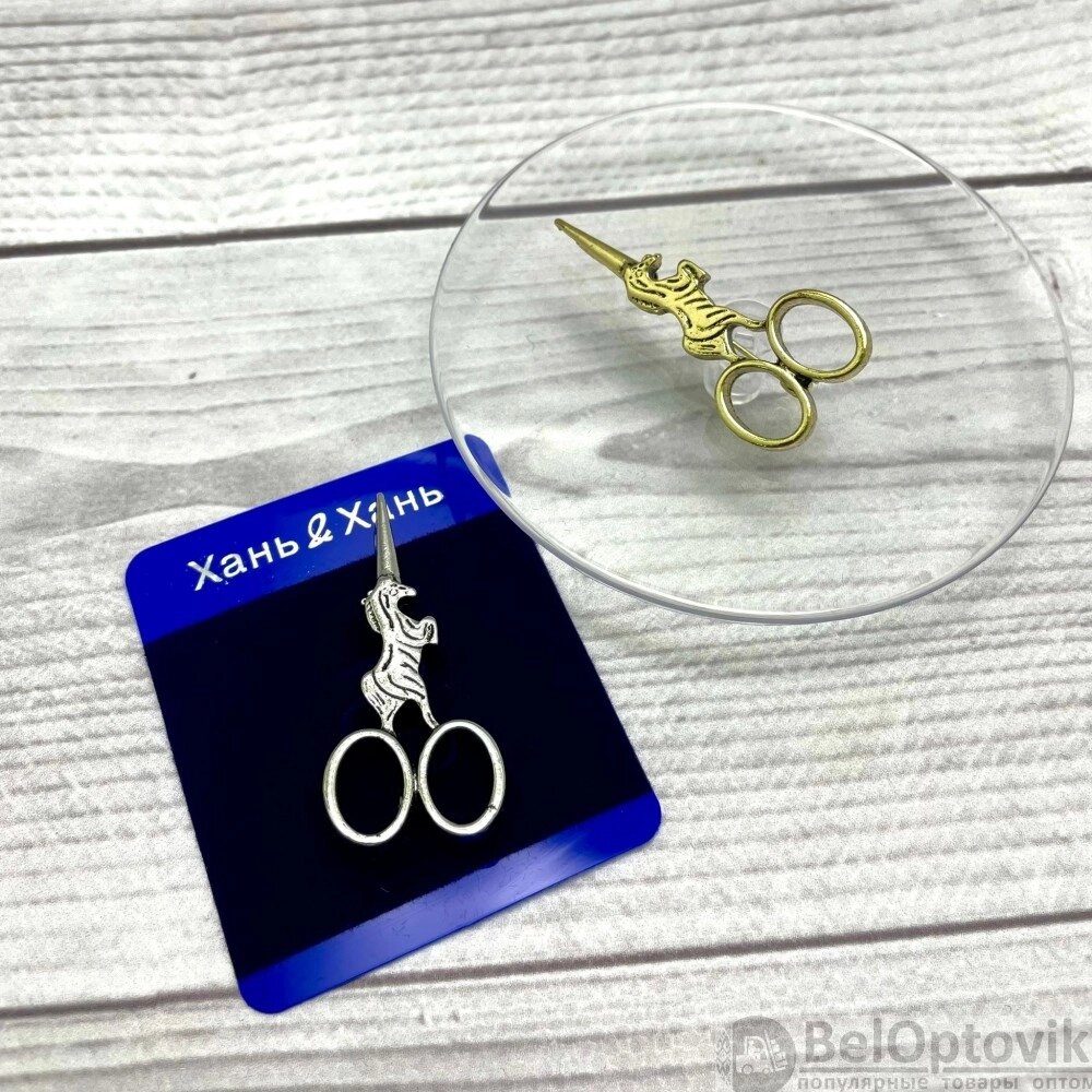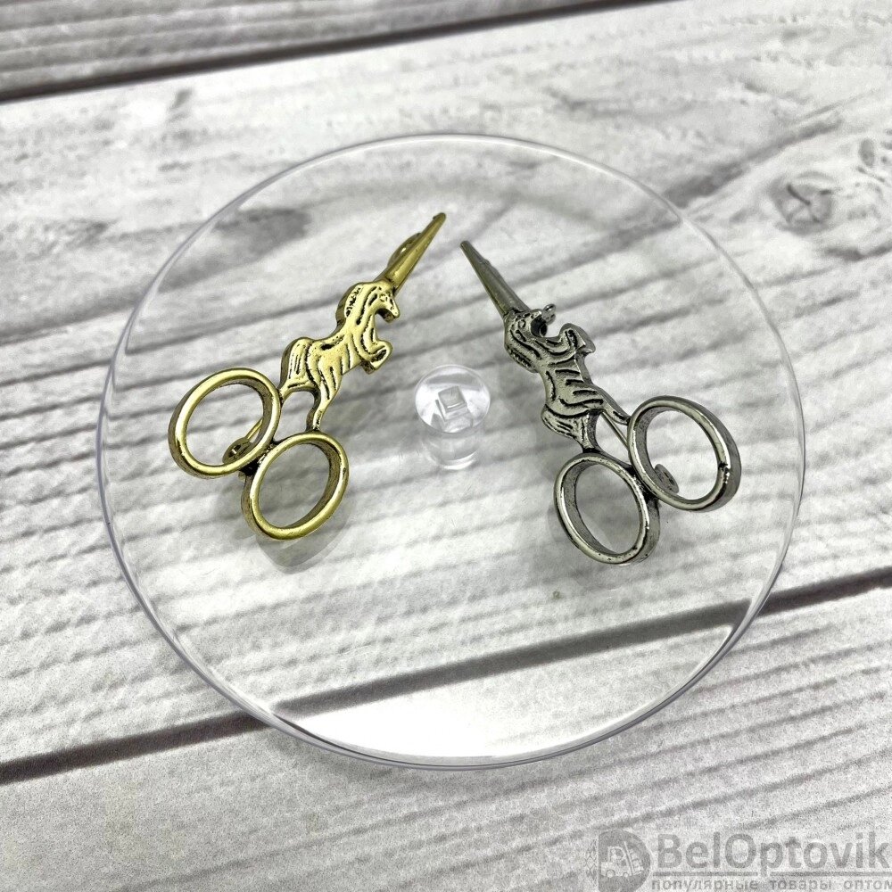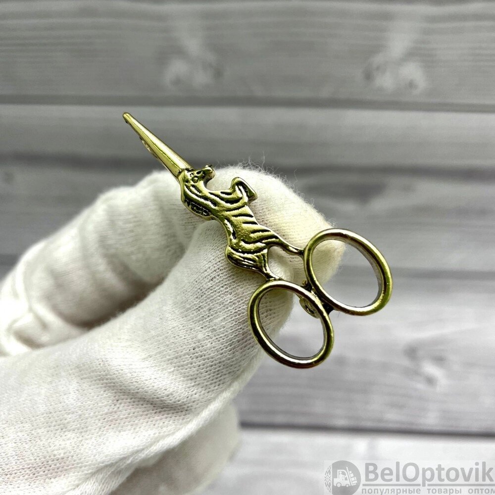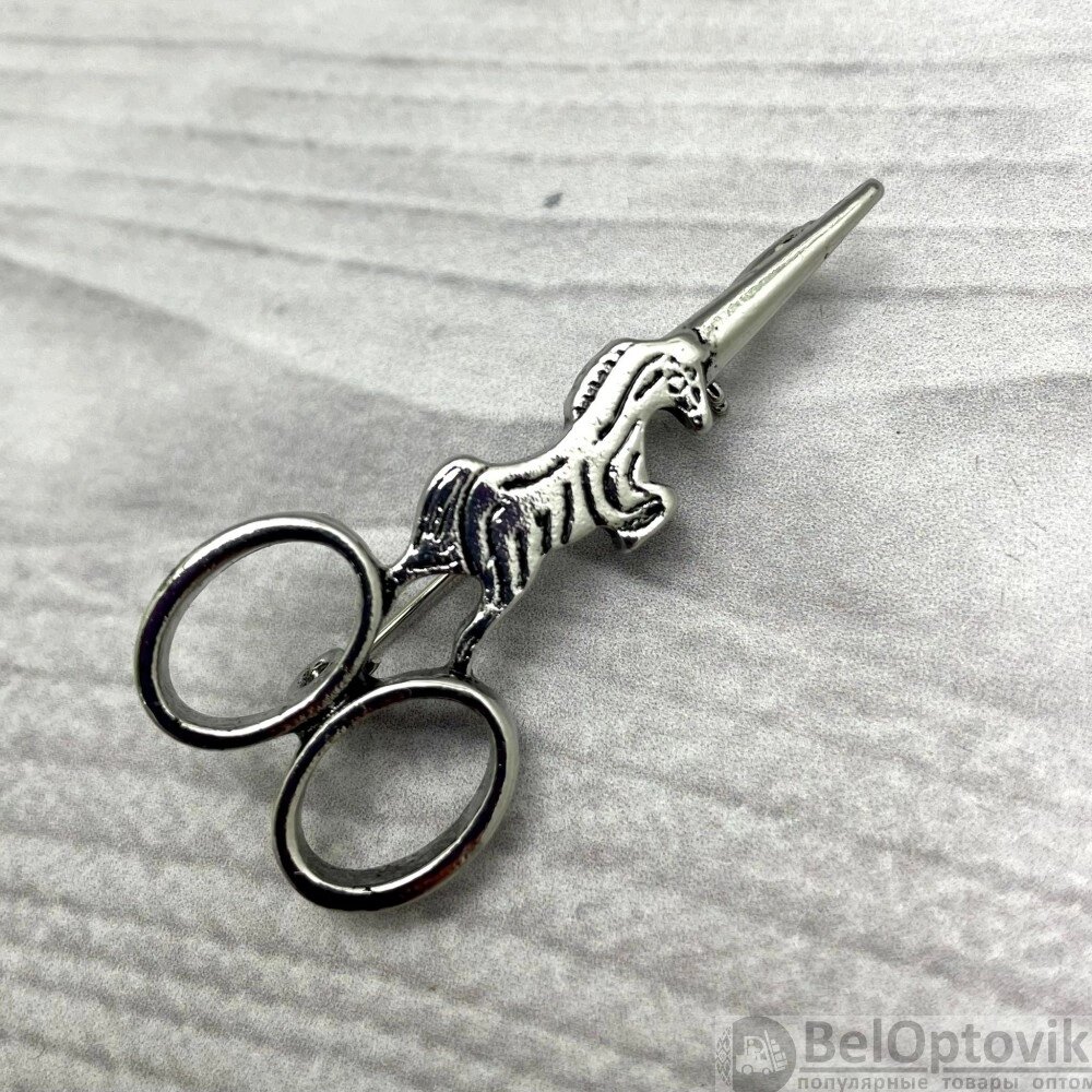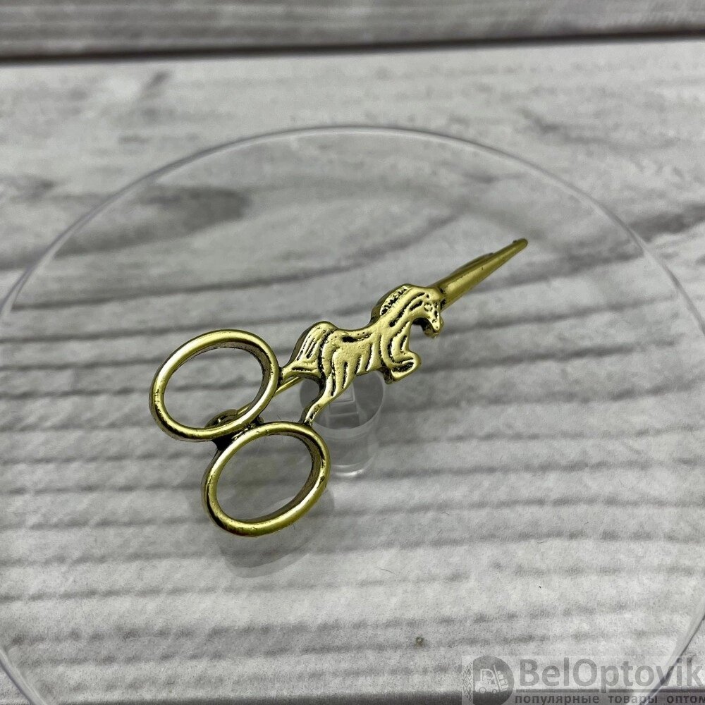 Бижутерия брошь стилиста Ножницы Единорог 5 см Цвет Золото