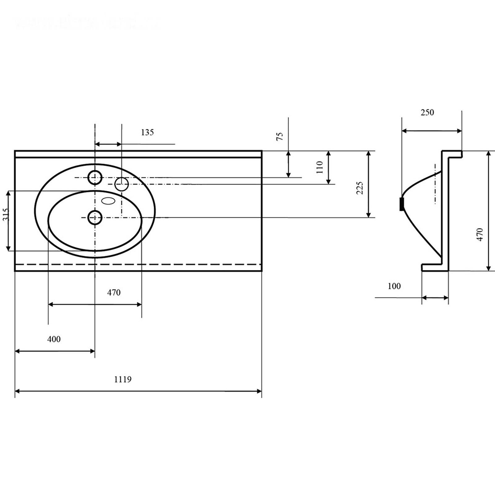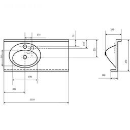 Раковина Hotel 3/1200, левая, с навесами и диспенсером