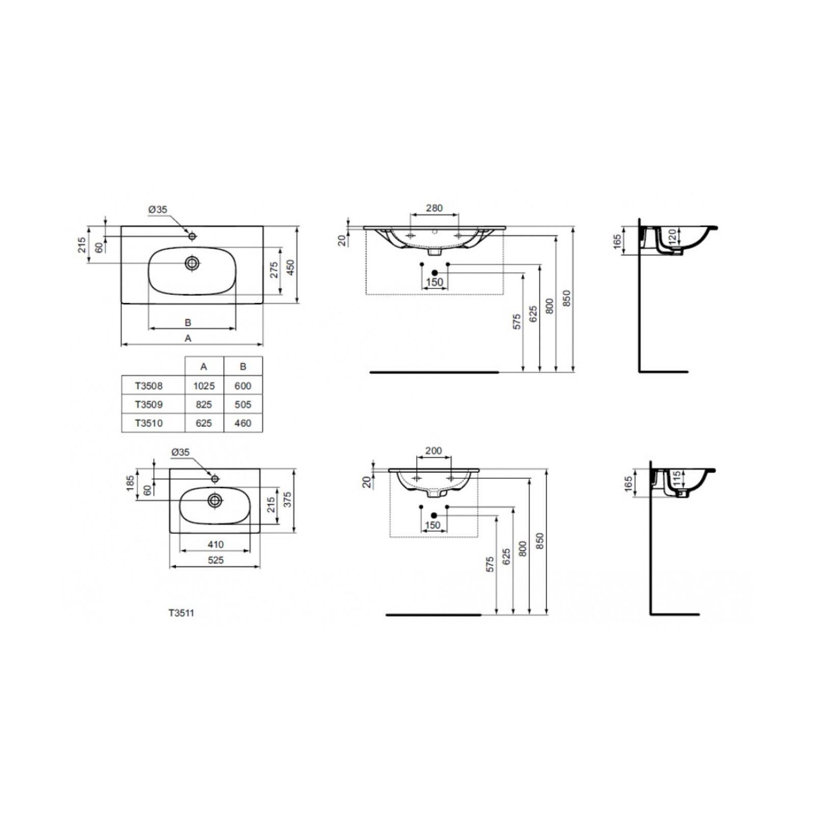 Раковина Ideal Standard TESI Vanity T350901, перелив, отверстие под смеситель, подвесная